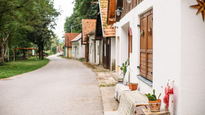 Gut erholt startet der zweite Tag mit einer kurzen, aber aussichtsreichen Wanderung zum Aussichtsturm Korkenzieher in der Ahrenberger-Eichberger Kellergasse. Die eng aneinandergereihten Weinkeller sind dabei ein gerne gewähltes Fotomotiv.
