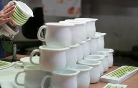 - Besuch des Emaillewerks: Sie sehen, wie der Emailleschlicker auf die Formen aufgetragen und bei 850°C im Brennofen aufgeschmolzen wird.