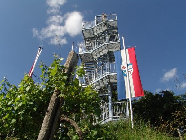 Der Korkenzieher, ein 15 Meter hoher Aussichtsturm in der Weinbauregion Traisental, bietet einen atemberaubenden Blick auf die Donauauen, das Weinviertel, das Waldviertel, das Tullnerfeld, das Kamptal und den Wienerwald bis zum Schneeberg.