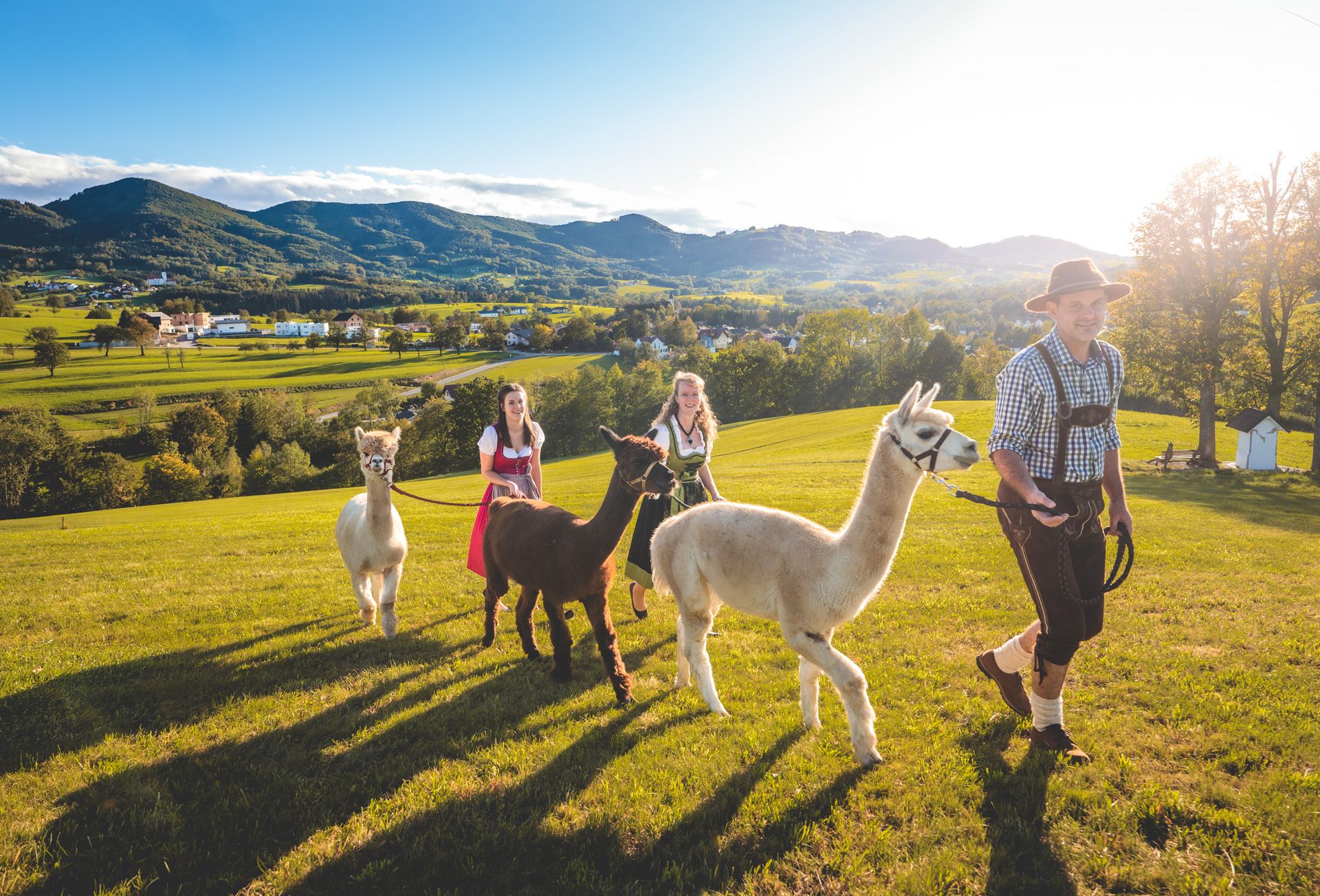 Beim gemütlichen Gehen an der frischen Luft durch die sanften Hügeln des Mostviertels und dem ruhigen Wesen der Alpakas lässt sich der Stress des Alltags vergessen und die Zeit entschleunigen. Genieße den herrlichen Blick nach Texing, St. Gotthard und Plankenstein,