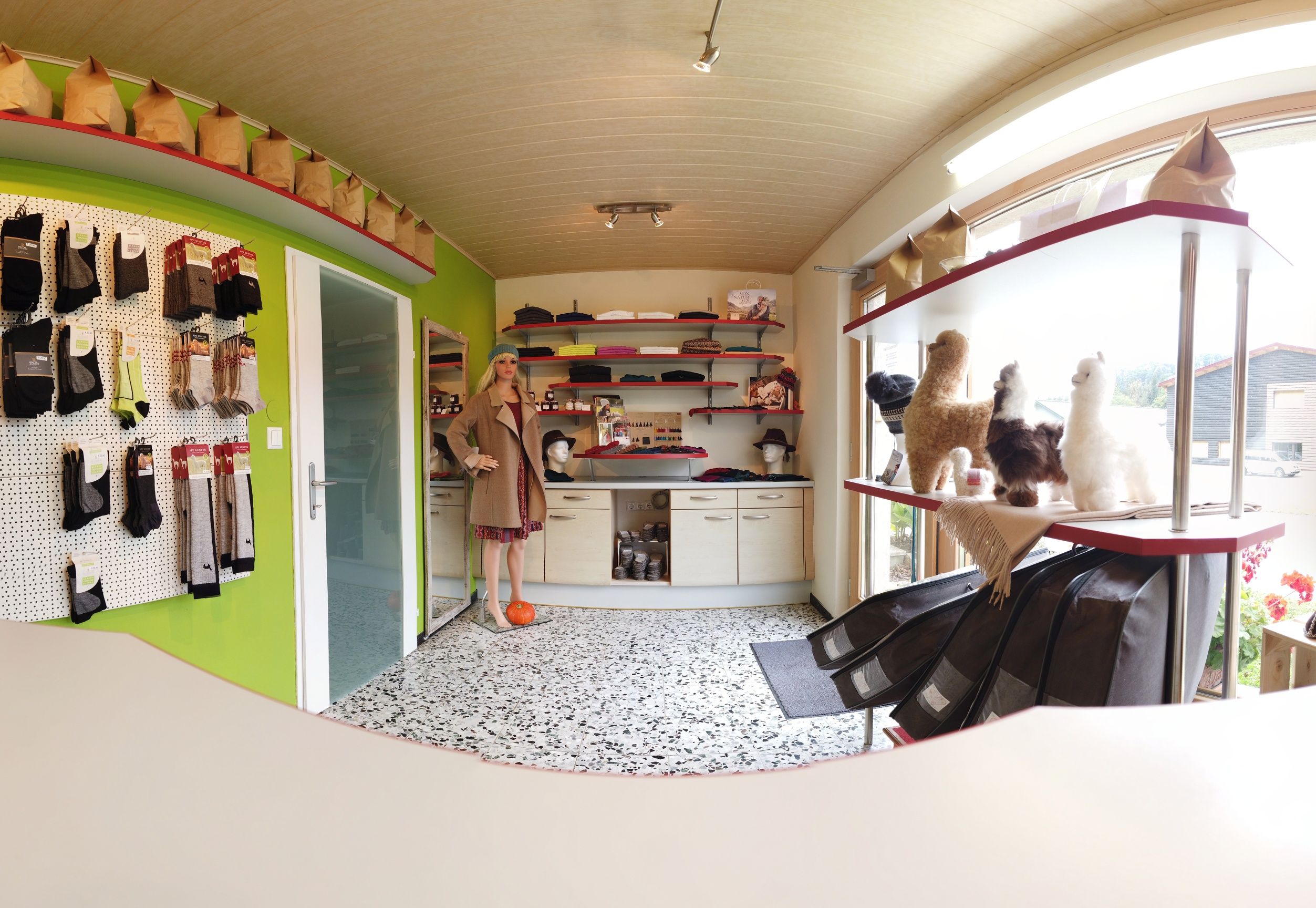 Abschließend kann nach der Wanderung noch in unserem Hofladen gestöbert werden, wo Produkte und Erzeugnisse vom Vlies der Götter, wie die feine Faser der Alpaka auch gerne genannt wird, erworben werden können.