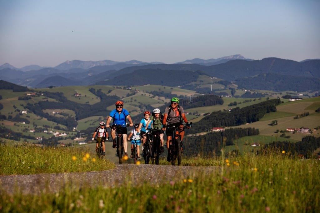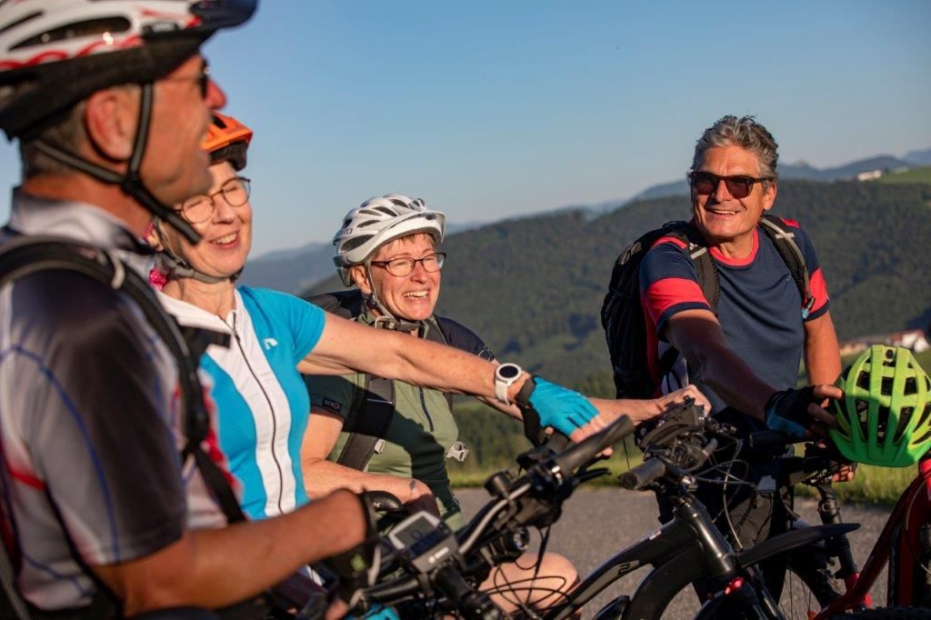 Sanft-hügelig und genussvoll ist sie, die Landschaft der Moststraße. Perfekt für ausgedehnte E-Bike-Ausflüge an der Seite von Guide Fritz Hofschwaiger.