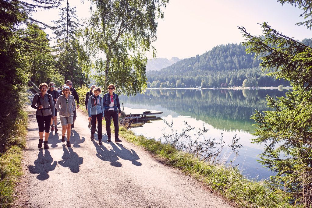 Türkisgrün und kristallklar: Der Erlaufsee unweit von Mitterbach liegt zu Füßen von Gemeindealpe und steirischer Bürgeralpe. So verbindet er die Bundesländer Niederösterreich und Steiermark. Und nur einen Katzensprung entfernt liegt der berühmte Wallfahrtsort Mariazell.
