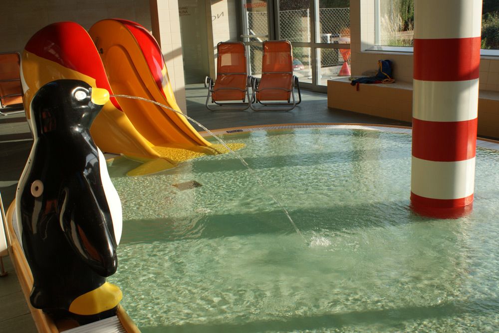Ob die komfortable Länge des Beckens für tägliche Schwimmeinheiten genutzt wird oder die 8,75 m lange Sprudelbank bei rund 31 °C Wassertemperatur zum Entspannen einlädt – hier findet jeder sein bevorzugtes Plätzchen. Die Kleinsten vergnügen sich im separaten Kinderplanschbecken mit Spritzfiguren und Kleinkindrutsche, während Kinder ab sechs Jahren und actionfreudige Erwachsene auf der 52 m langen „Black-Hole“-Röhrenrutsche ihre persönliche Bestzeit herausholen können.