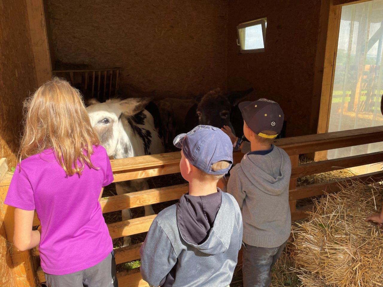 Neben Eseln, Schafen und Schweinen tummeln sich Hühner, Katzen und Kaninchen am Hof-Areal. Bei einer Eselwanderung merkst du die beruhigende Wirkung der Tiere und dem Grün der Natur, atmest klare Luft und hörst das fröhliche Zwitschern der Vögel. Bei einer Wanderrunde durch Blumenwiesen und Wald werden Kräuter und deren Verwendung erklärt, geerntet und verarbeitet. Bei uns kannst du Eier abtragen, Katzen streicheln, ausmisten, Tiere füttern, im Heu hüpfen.