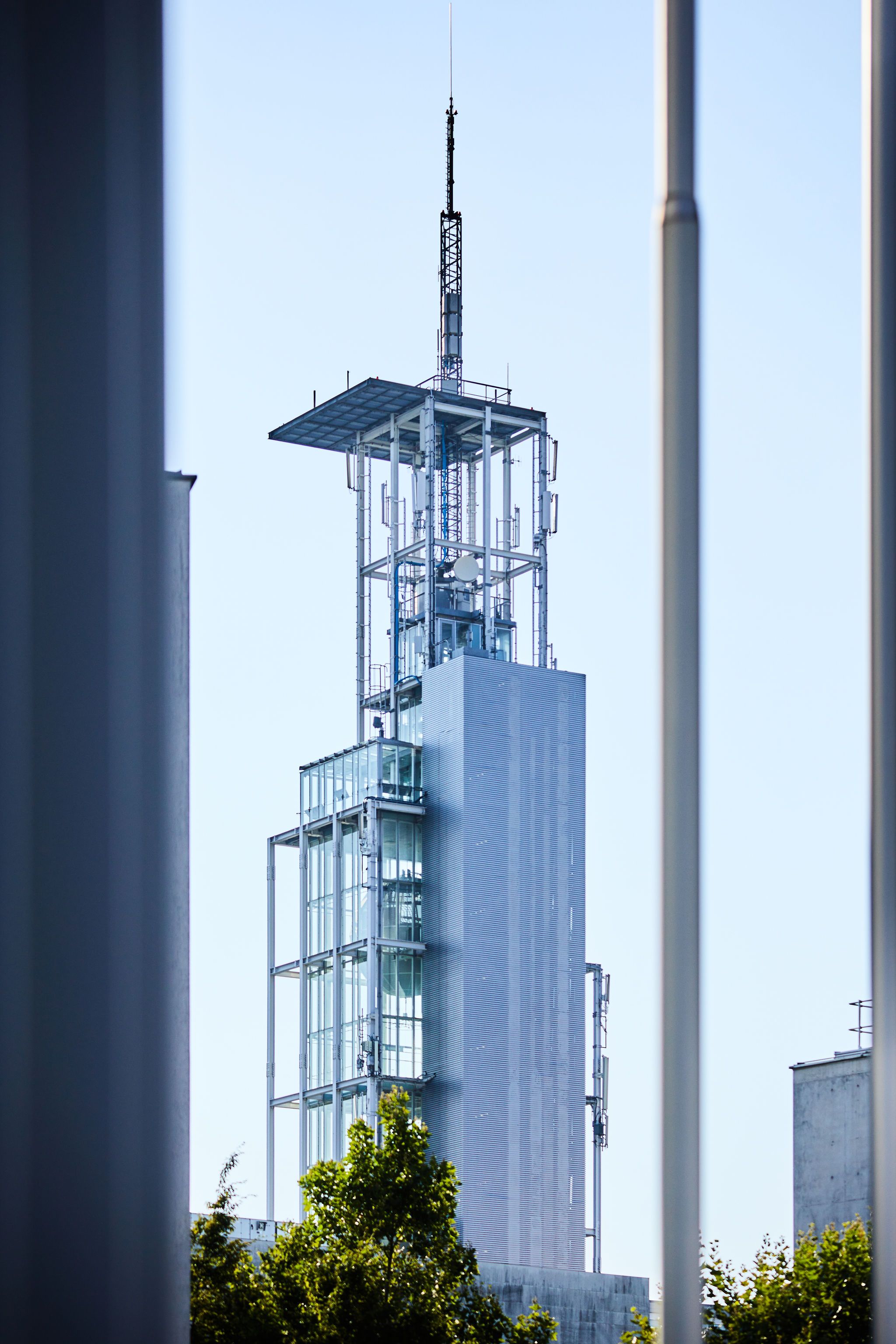 Trotz seiner massiven Struktur aus 650 Tonnen Stahl und rund 1.000 Quadratmetern Glas wirkt das Bauwerk erstaunlich leicht und transparent. Auf einer Grundfläche von nur 15 x 15 Metern erhebt sich die filigrane Konstruktion luftig in den Himmel.