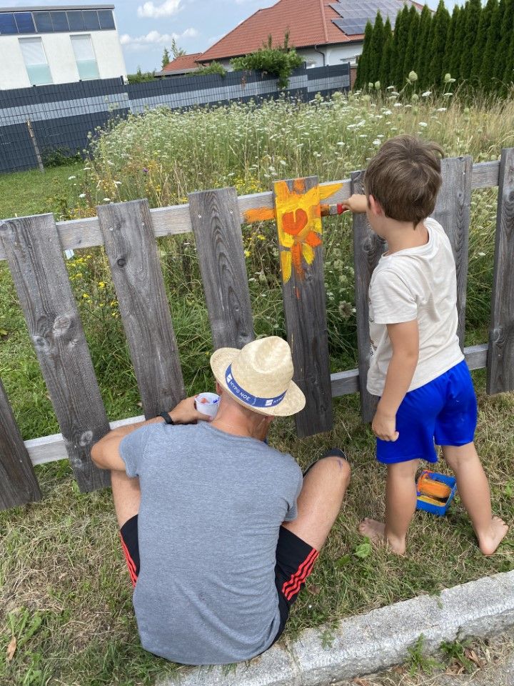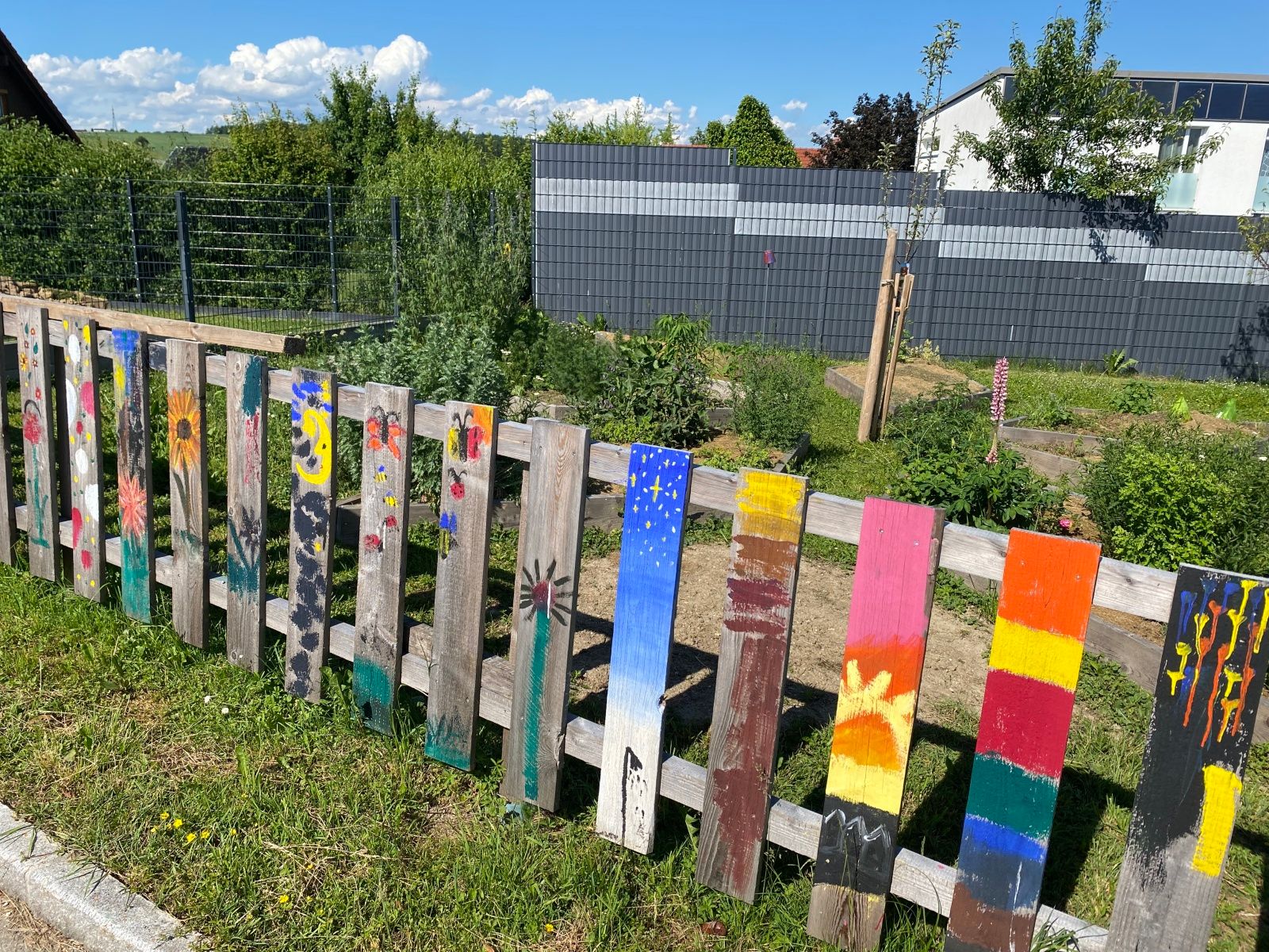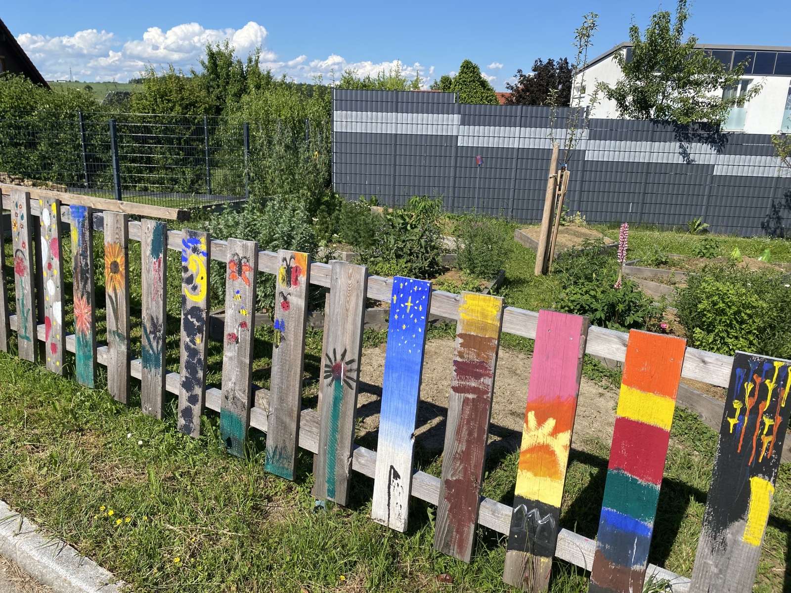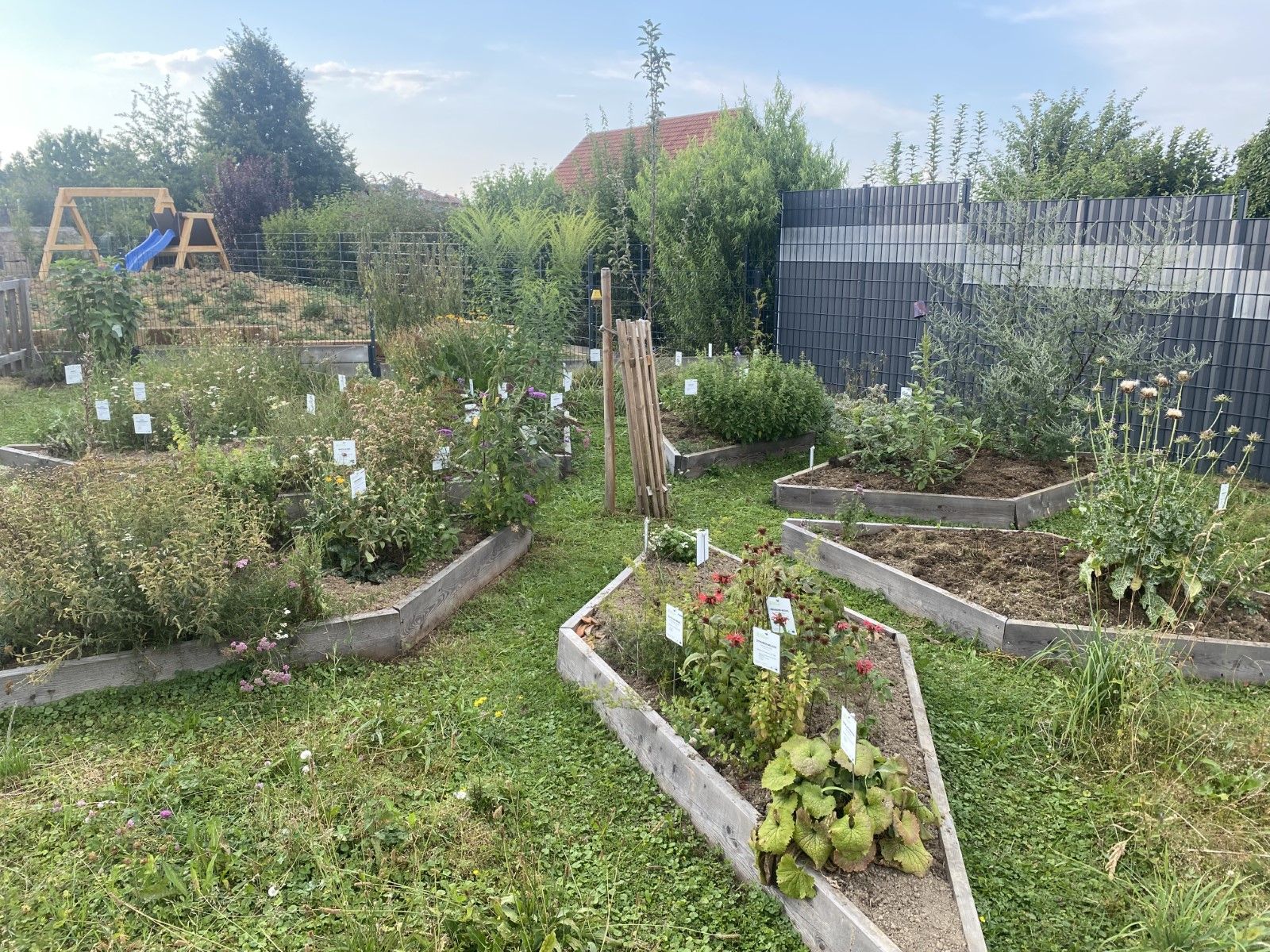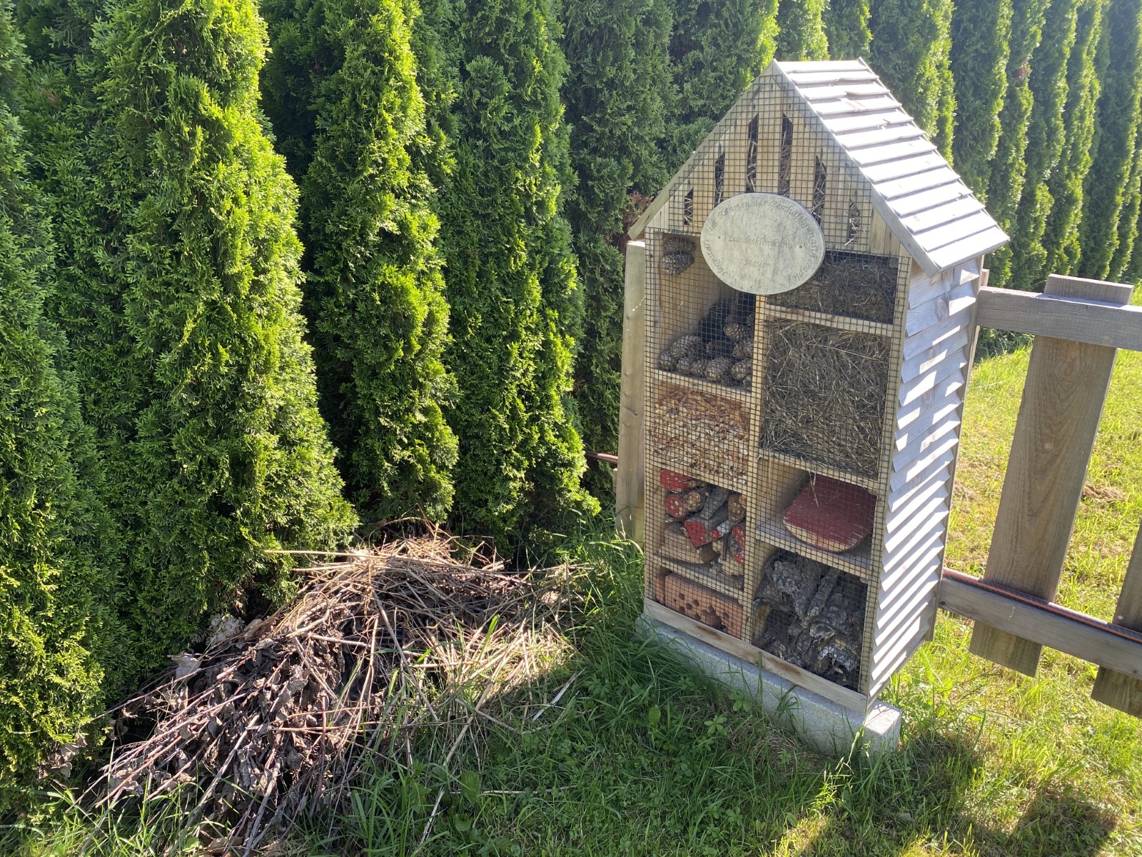 Der zweite Bereich besteht aus Sträuchern und Bäumen und einer wilden naturbelassenen Blumenwiese und einem Insektenhotel.