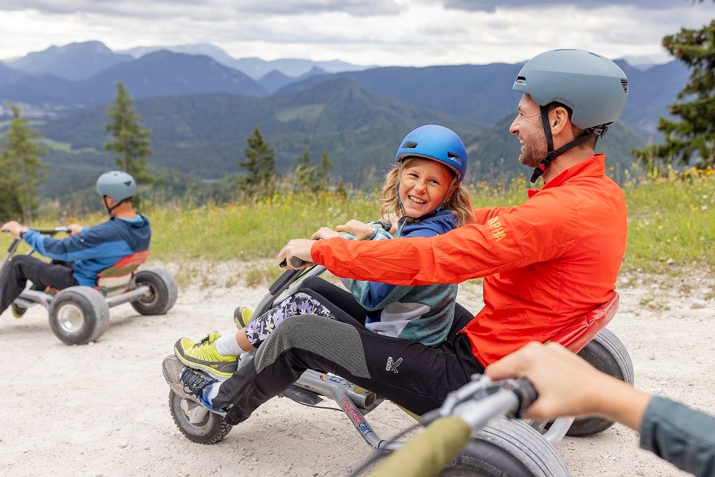 Achtung: Kleinkinder unter 4 Jahren dürfen aus Sicherheitsgründen nicht mit den Mountaincarts fahren. Kinder zwischen 4 und 8 Jahren fahren gratis gemeinsam mit einem Erwachsenen. 6- bis 8-Jährige zahlen lediglich die Liftfahrt. Ab 8 Jahren UND einer Mindestgröße von 140 cm dürfen Kinder selbst ein Moutaincart lenken. Ein Helm ist Pflicht.