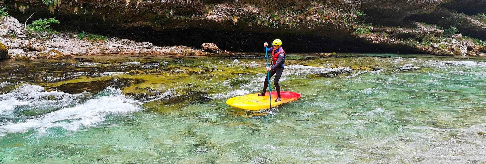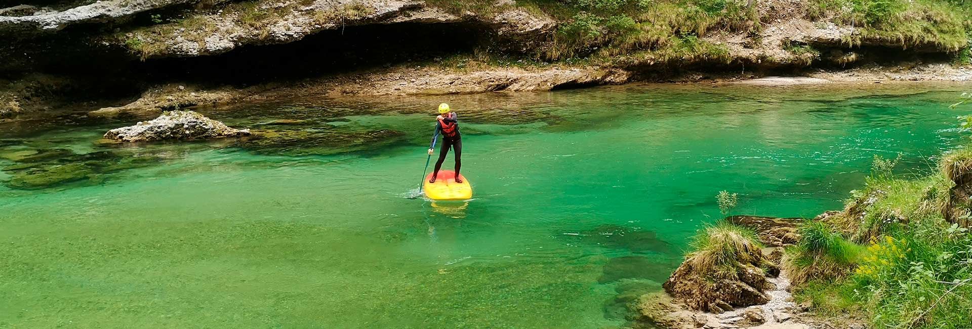 Stand Up Paddeln (SUP) ist der Trendsport der letzten Jahre. Es ist ein schönes Gefühl am Board stehend übers Wasser zu gleiten. Ein besonderes Highlight mit dem SUP bieten wird bei der Salza Schlucht Tour. Diese außergewöhnliche Schluchtstrecke kann nur mit einem wildwassertauglichen Boot oder SUP erkundet werden. Nach einer Einschulung im ruhigen Wasser wird die ca. 5 Kilometer lange Strecke auf leichtem Wildwasser befahren. Die SUP Tour auf diesem herrlichen Flussabschnitt wird mit professioneller Wildwasserausrüstung durchgeführt. Der Guide zeigt die Route durch die spritzigen Stromschnellen und es macht Spaß das Board durch die kleinen Wellen zu paddeln.Kajakkurs