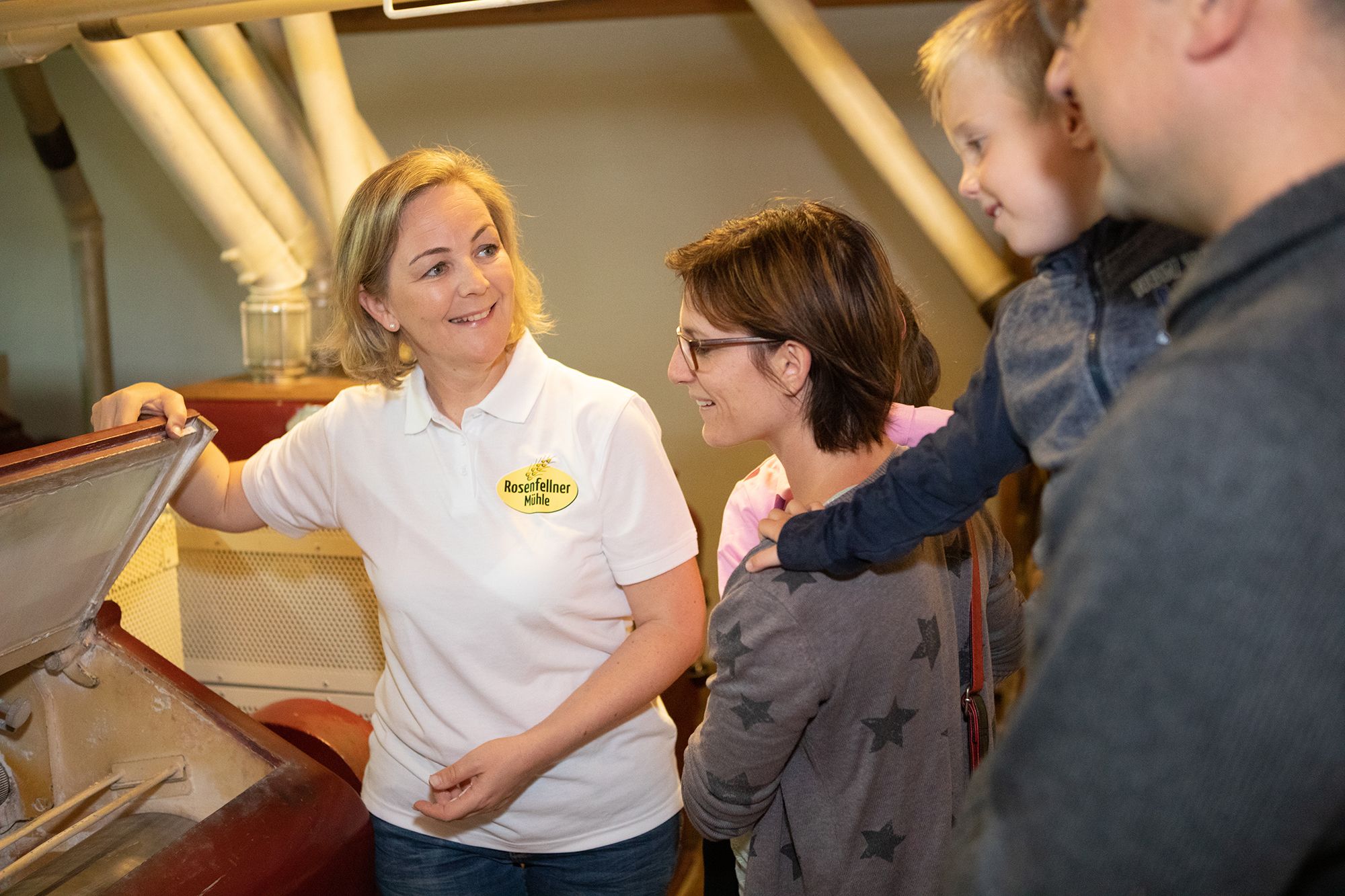 Besucher der Rosenfellner Mühle können die Tradition und das Handwerk hautnah erleben. Im Rahmen einer Führung wird der Weg des Getreidekorns bis zur Vermahlung zu feinem Mehl gezeigt, und es werden wissenswerte Details zur Vielfalt der Getreidesorten vermittelt.