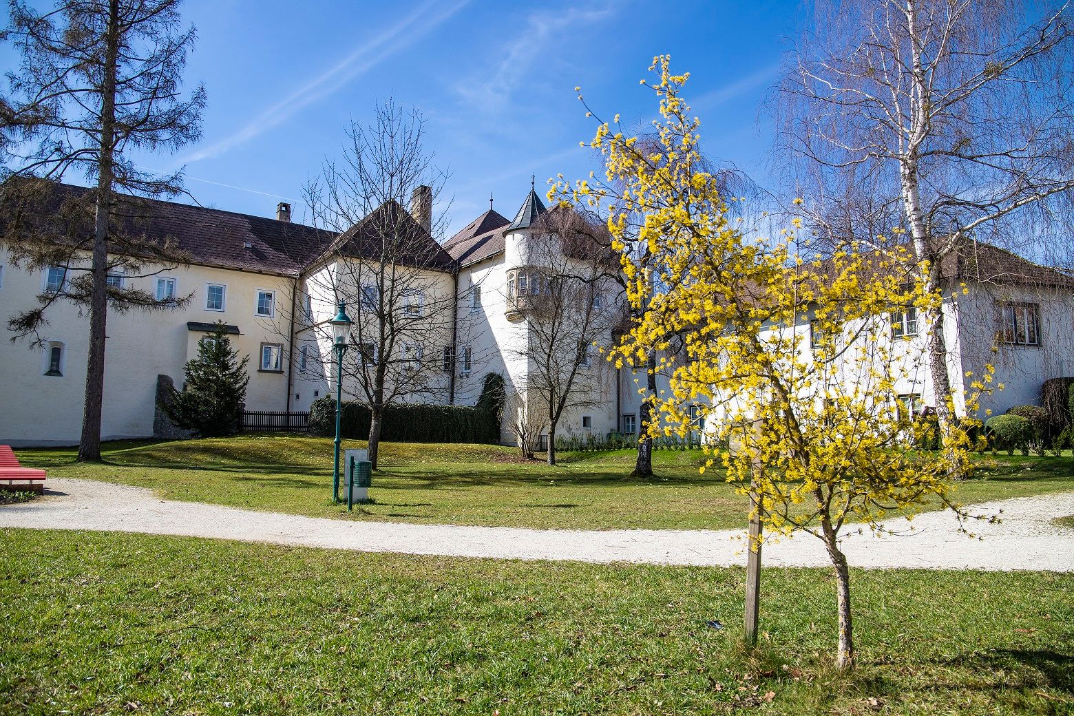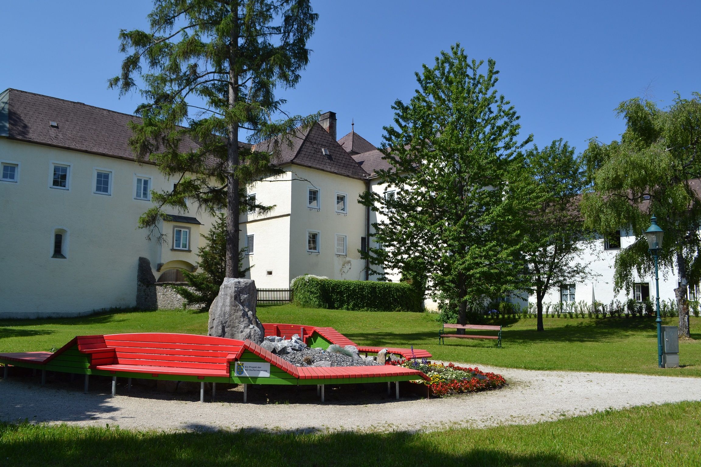 Die Dirndloase ist eine Rast- und Ruheplatz direkt vor dem Schloss Kirchberg.