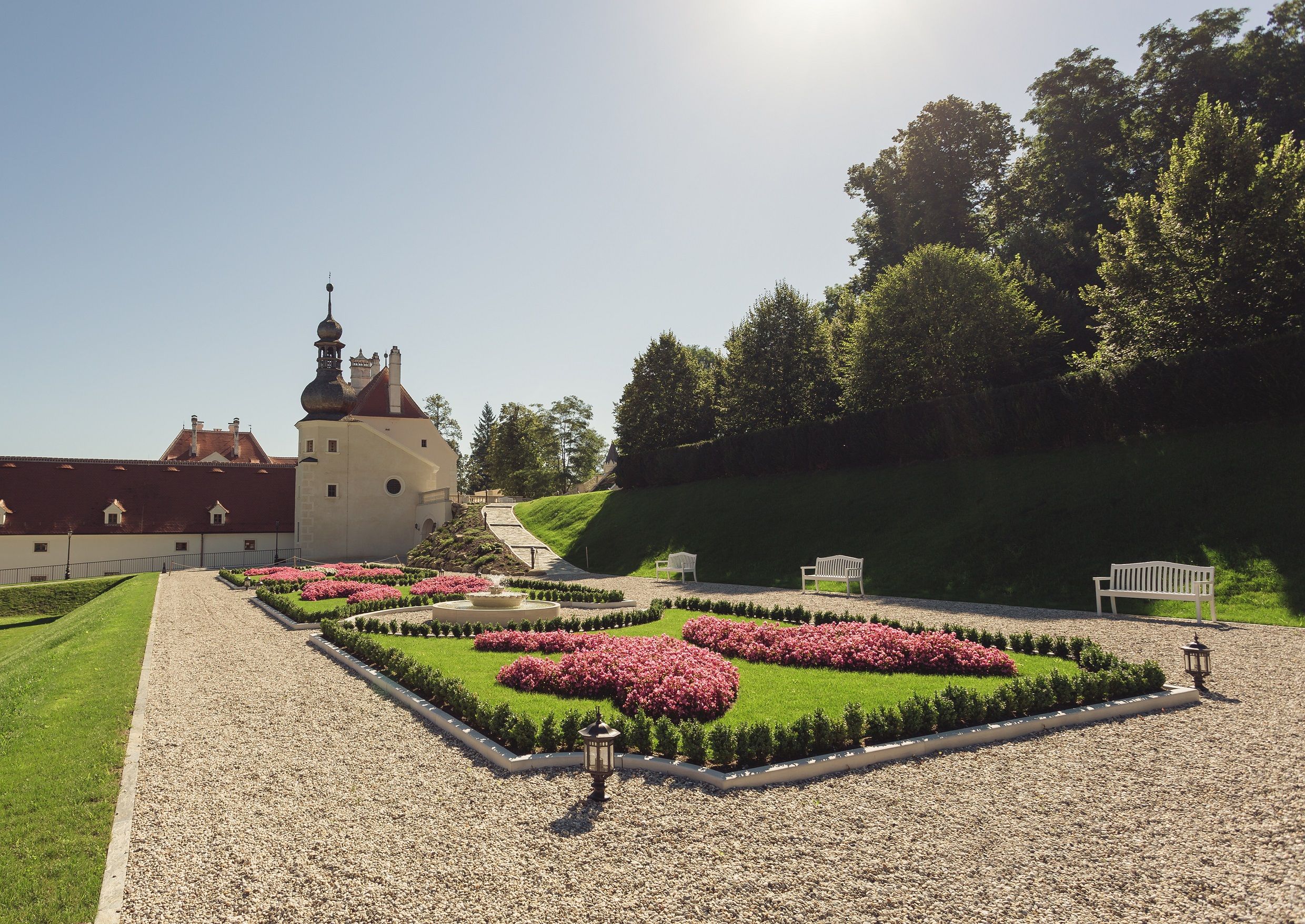Beim Durchschreiten der Tore des Schloss Thalheim wird man von Einfachheit und Harmonie in zeitlosem Ambiente empfangen. Eingebettet zwischen barocken Rosengärten präsentiert sich das prächtige Schloss als Ort voll Frieden, Stille und Ruhe.