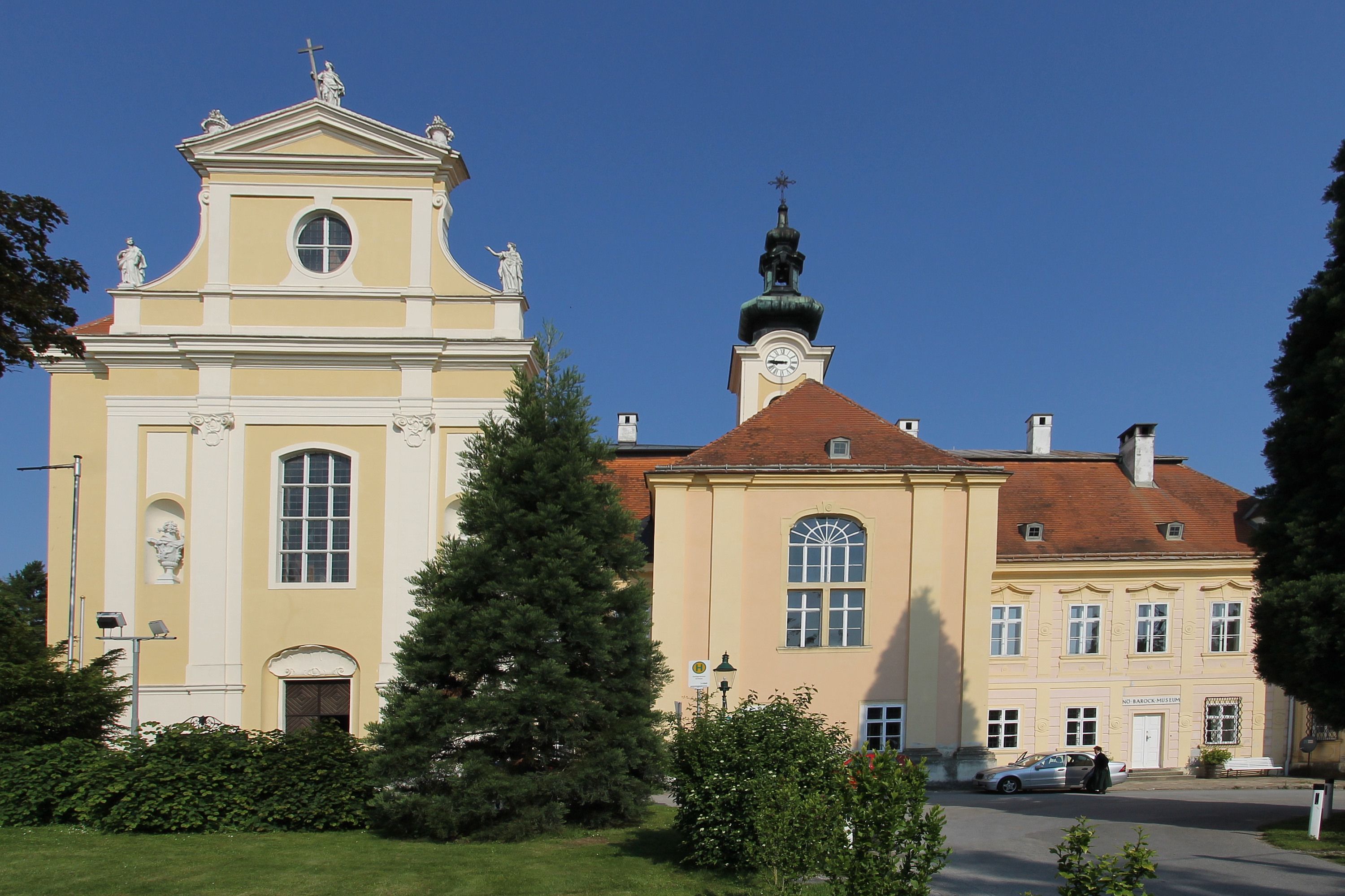 Neben dem spätbarocken Schloss wurde 1755 die wertvoll ausgestattete Pfarr- und Wallfahrtskirche Mariä Himmelfahrt erbaut. Das Altarbild und die Fresken stammen von Maulpertsch. Im Sommer sind im Schloss sonntags Matinéen mit bekannten Künstlern zu hören. Besichtigung nach Voranmeldung.