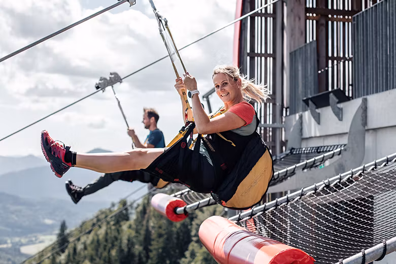 Bei der ZIPLINE ANNABERG kommen Abenteuerlustige, egal ob Jung oder Alt, voll auf ihre Kosten. Die Zipline Annaberg ist die erste derartige Anlage in Niederösterreich und steht für Nervenkitzel und Adrenalin, gepaart mit einem Höchstmaß an Sicherheit. Auf 4 nebeneinander gespannten Seilen fliegt man parallel zum Sessellift den Berg hinunter und überwindet dabei 386 Höhenmeter. Das bringt Spaß für bis zu 4 Fluggäste gleichzeitig!