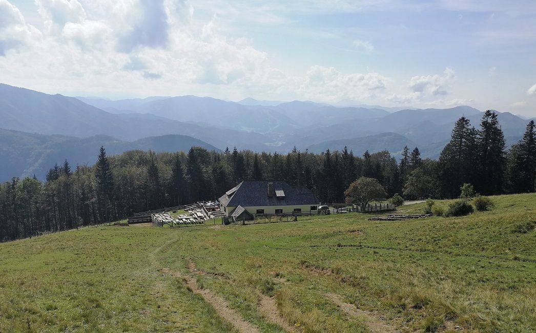 Das Almgasthaus Klosteralm auf 1.060 Metern Höhe in der Almregion Muckenkogel bietet von der Sonnenterrasse aus einen herrlichen Panoramablick bis hin zum Ötscher.