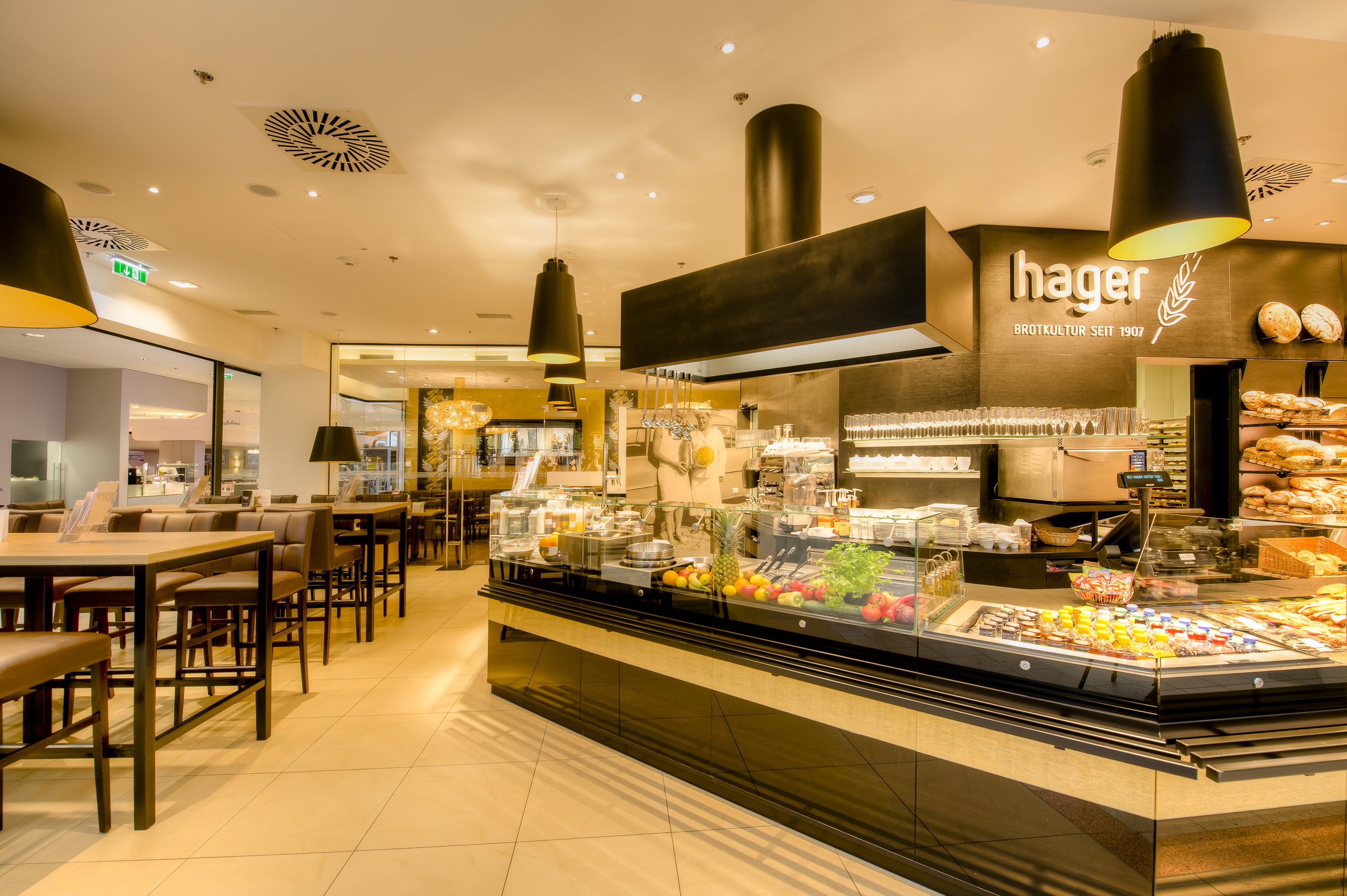 Die große helle Filiale im St. Pöltner Traisenpark der Traditionsbäckerei Hager lädt zum gemütlichen Kaffeeplausch im Einkaufscenter ein: mit moderner und gemütlicher Ausstattung und einem breiten Sortiment an Brot, Gebäck, Mehlspeisen und Kaffeevariationen. Ein Hit sind natürlich die Frühstücksvariationen, mit denen jeder Tag besonders gut startet.