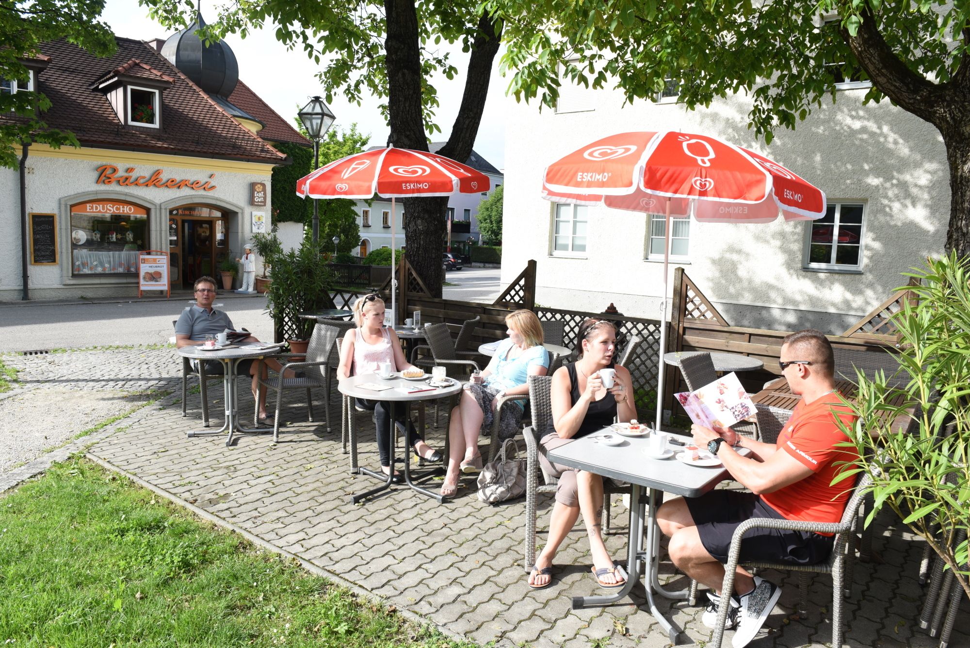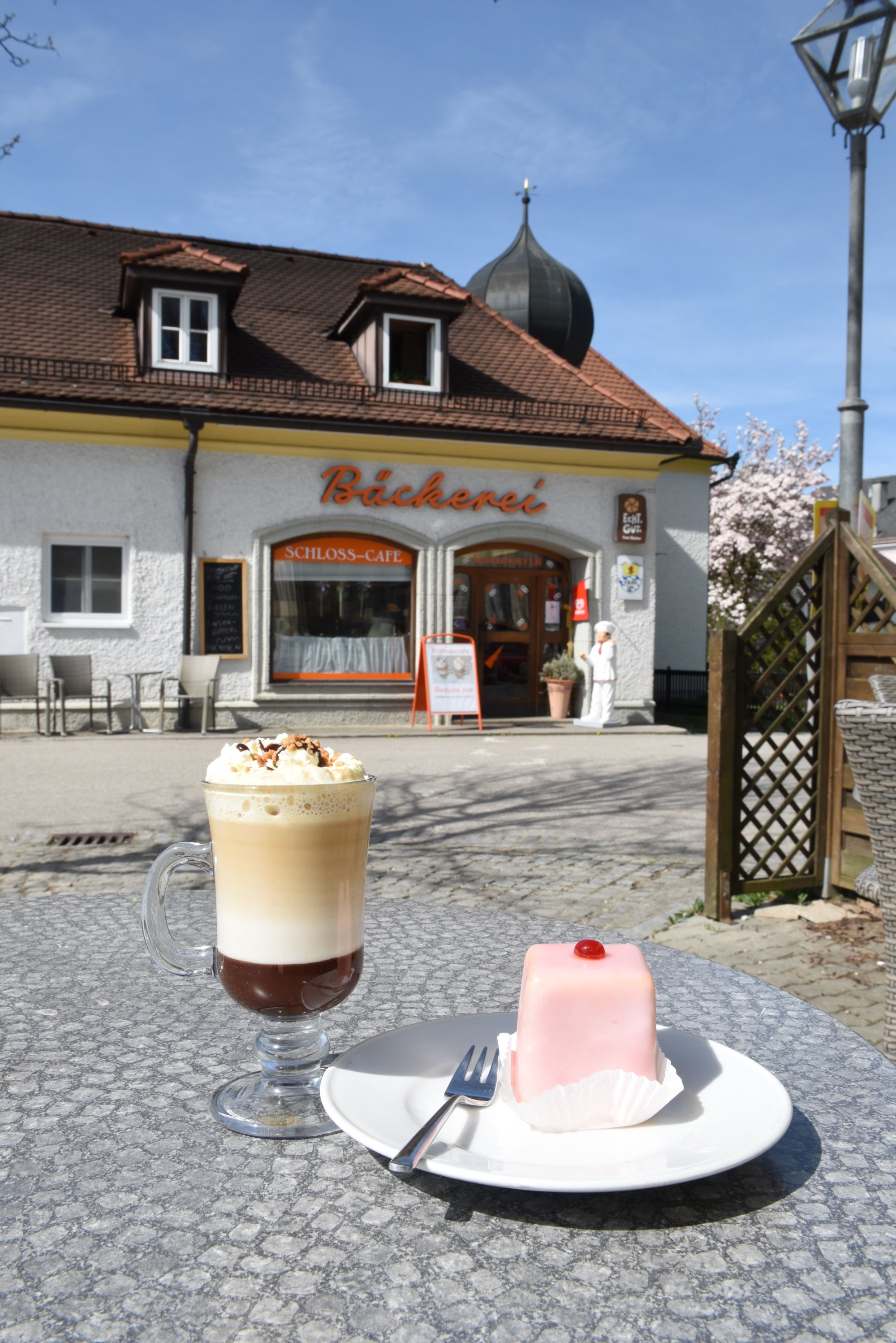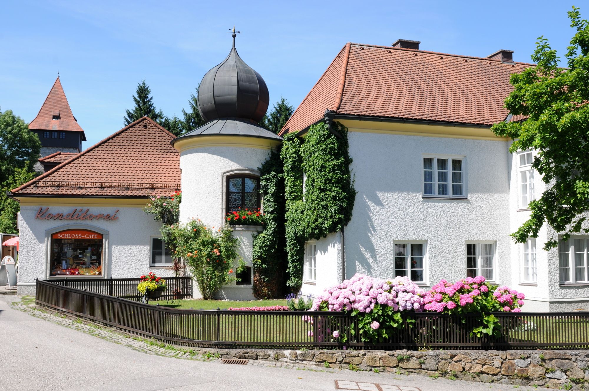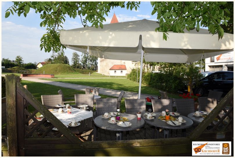 Die charmante Konditorei mit Café liegt am sogenannten Marktplatz, eingebettet in den Schlosspark von Schloss Ulmerfeld.