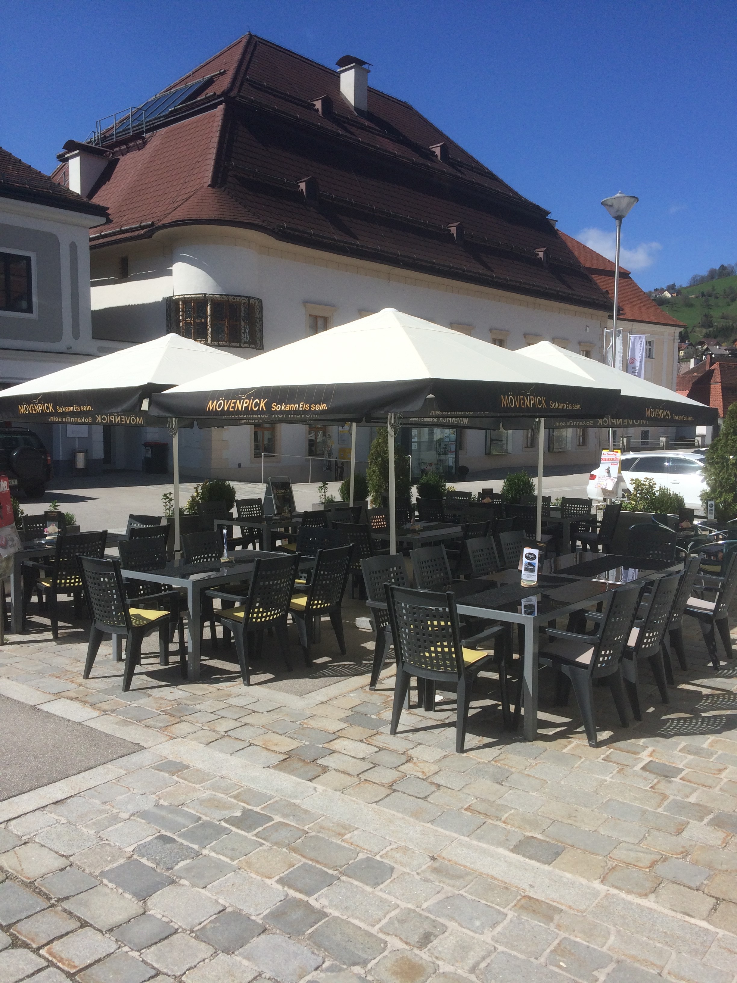 Direkt am Marktplatz in Ybbsitz befindet sich das Cafe am Platz von Christian und Natascha Kamleitner. Regionale Gerichte sowie Eis- und Kuchenspezialitäten versüßen jedem müden Sportler die kurze Verschnaufpause. Neben einem großzügigen Gastgarten bietet das Cafe durchgehend warme Küche für hungrige Gäste. Neben einer hervorragenden Küche kann neben dem FeRRUM auch die Schmiedemeile zur Tannhäuserhöhle besichtigt werden. Für müde Radler ist das Cafe ein ideale Einkehrstopp entlang des Kleinen Ybbstalradwegs. Ein besonderer Wandertipp ist der Aussichtsturm am Prochenberg sowie ein Abstecher zur Wallfahrtskirche Maria Seesal.