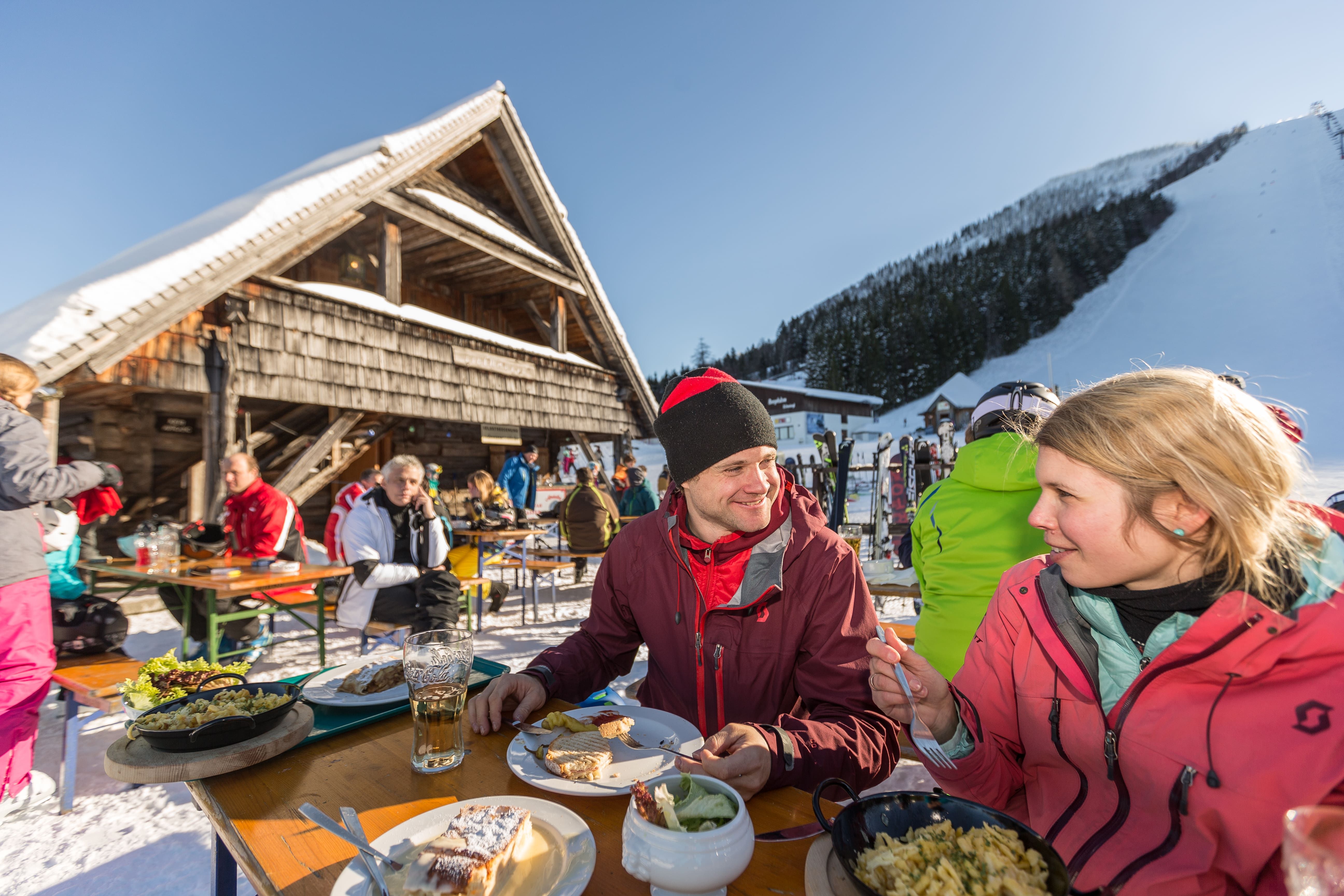 Zum Kaffee kredenzen die Wirte auf der Eibenhütte frischen selbstgemachten Apfel- oder Topfenstrudel. Die klassische Skihütte ist nur während der Wintersaison geöffnet.