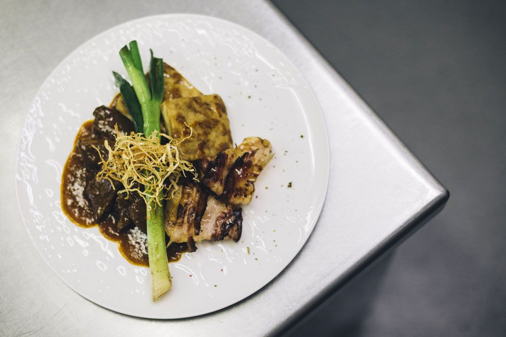 Das Weinfass ist gut platziert – direkt vor der Vinothek. Die recht tief hängende Gewölbedecke prägt den Eingangsbereich. Rustikal, aber sehr gemütlich. Im Gasthaus Riedl-Schöner wird besonderes Augenmerk auf die heimische Weinkultur gelegt. Wirt und Sommelier Dietmar Schöner verwöhnt die Gäste mit mehr als 100 verschiedenen Positionen. Die Küche führt seine Gattin Ingrid. Ein eingespieltes Team, das bereits in vierter Generation die Werte des charmanten Gasthauses nach außen trägt. Neben dem vinophilen Genuss ist es die regionsbezogene Hausmannskost, für die das Wirtshaus bekannt ist. Das gebratene Waldviertler Saiblingsfilet auf bunten Bandnudeln mit Sellerie-Karotten-Julienne mundet. Spezialitätenwochen bringen Bewegung in die Speisekarte. Die hausgemachte Malakoff-Torte punktet mit Individualität. Wahrlich ein Geschmackserlebnis.