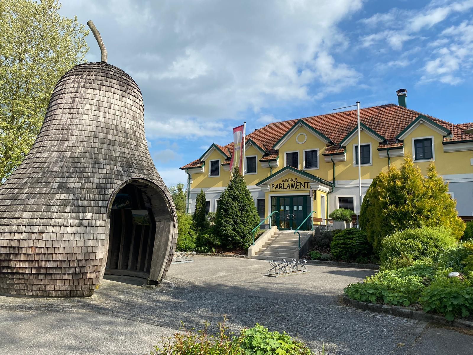Typische Mostviertler Hausmannskost nach Oma´s Rezepten trifft vegetarische und vegane Küche mit vielen Kräutern und Gemüse aus dem eigenen Garten. Der Most wird im Haus selber gepresst und gibt auch manchem Gericht seine eigenen Note. Vor dem Haus steht die Mostviertler Riesenmostbirne, eine große Birne aus Holz, durch die der Donauradweg mittendurch führt. Wenn es das Wetter erlaubt, werden die Gäste in unserem gemütlichen Gastgarten mit Blick auf den Spielplatz verwöhnt.