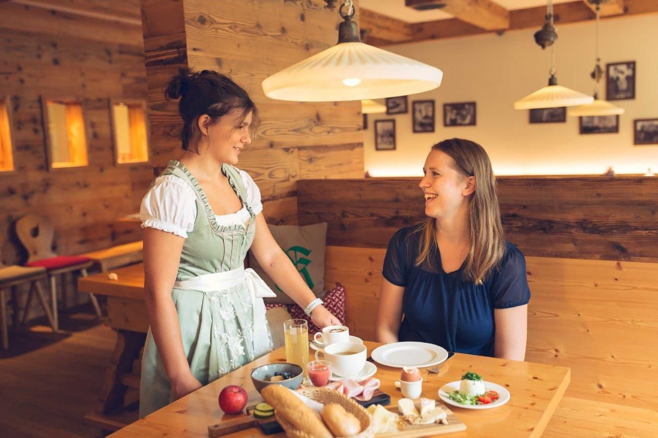 Morgens erwartet Sie ein reichhaltiges Frühstücksbuffet mit hausgemachten Marmeladen und Säften und regionalen Spezialitäten wie Mostciutto oder feiner Wabenhonig. Abends verwöhnt Sie das Küchenteam mit tollen Spezialitäten - von der einfachen Mostsuppe bis zum 5-gängigen Menü aus raffiniert zubereiteten, erntefrischen und hochwertigen Produkten.