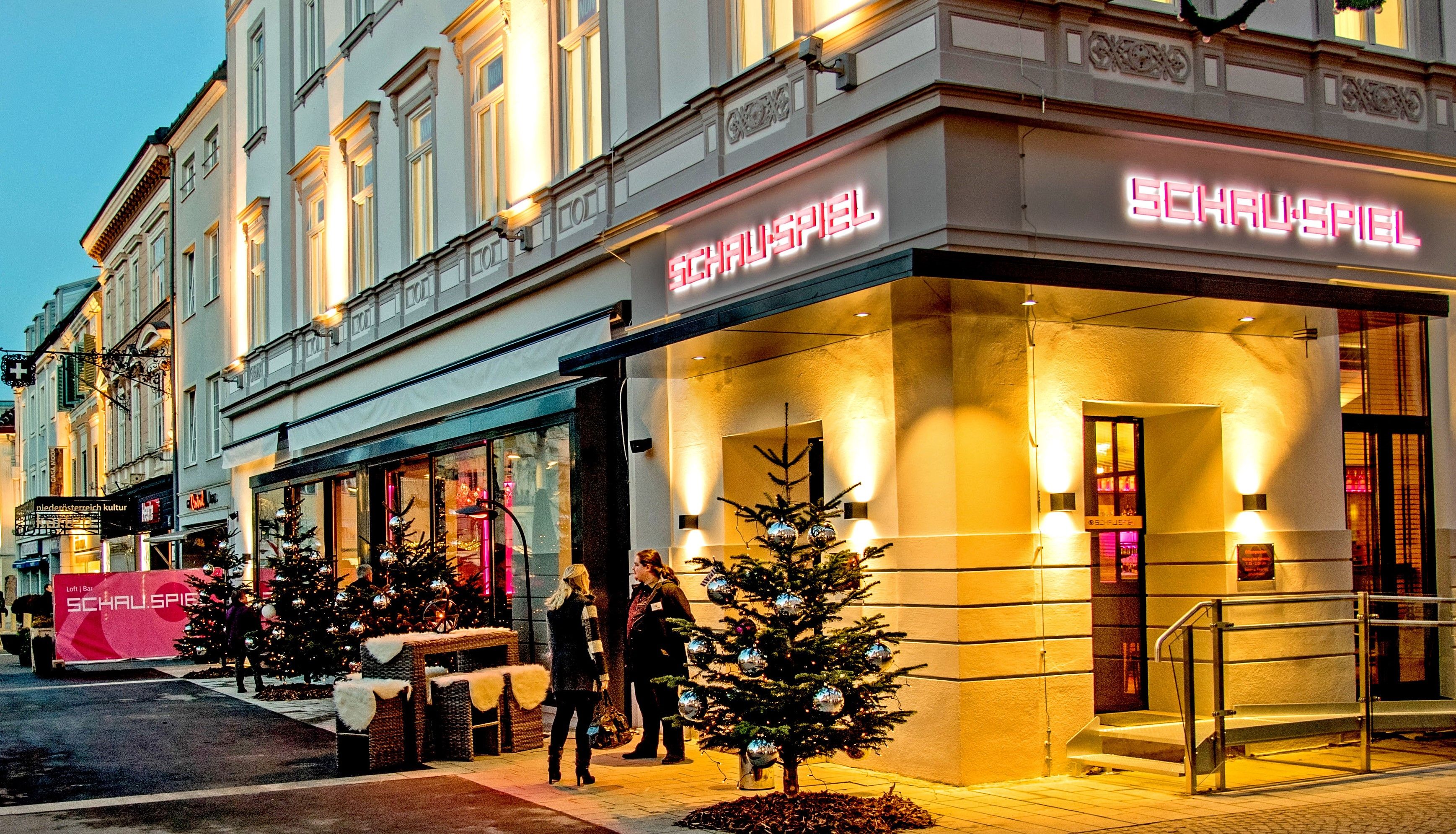 Kulinarisch bleiben hier keine Wünsche offen: eine reichhaltige Früh­stückskarte, vielfältige Quickmenü’s zu Mittag und handgemachten Köstlichkeiten der Konditorei Raimitz für zwischendurch. Abends verwöhnt das Schau.Spiel mit feinen à la carte Gerichten, regionalen Weinen und köstlichen Cocktail-Kreationen.