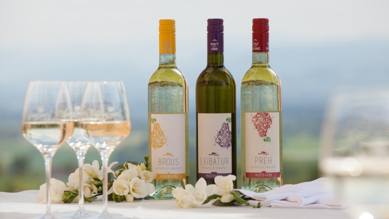 Best of Most: Die Gourmetmoste der Mostbarone wurzeln in alten Traditionen und sind das Ergebnis moderner Kellereitechniken. Erhältlich sind sie in drei Sorten: als spritziger Brous, als eleganter Preh und als kraftvoller Exibatur.