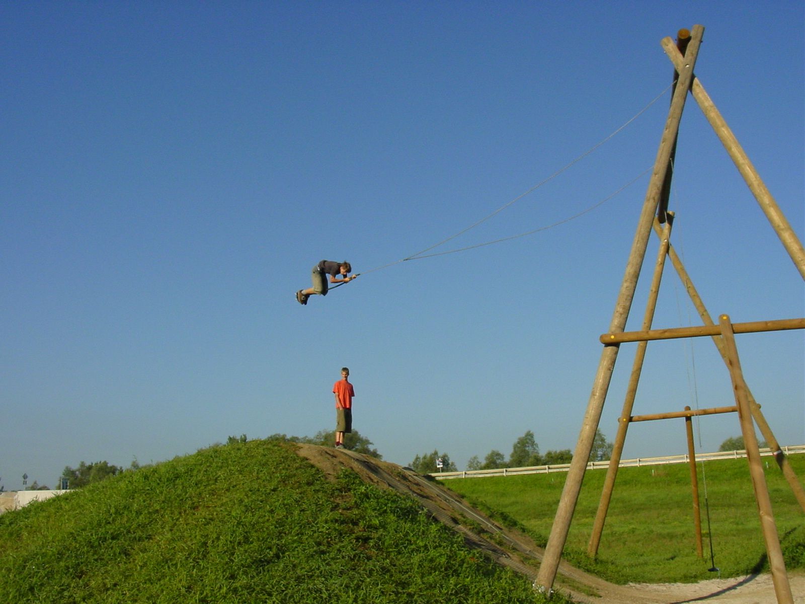 Aus der Luft betrachtet, sind die Gerätschaften so angeordnet, dass sie den Grundriss eines Schiffes ergeben.