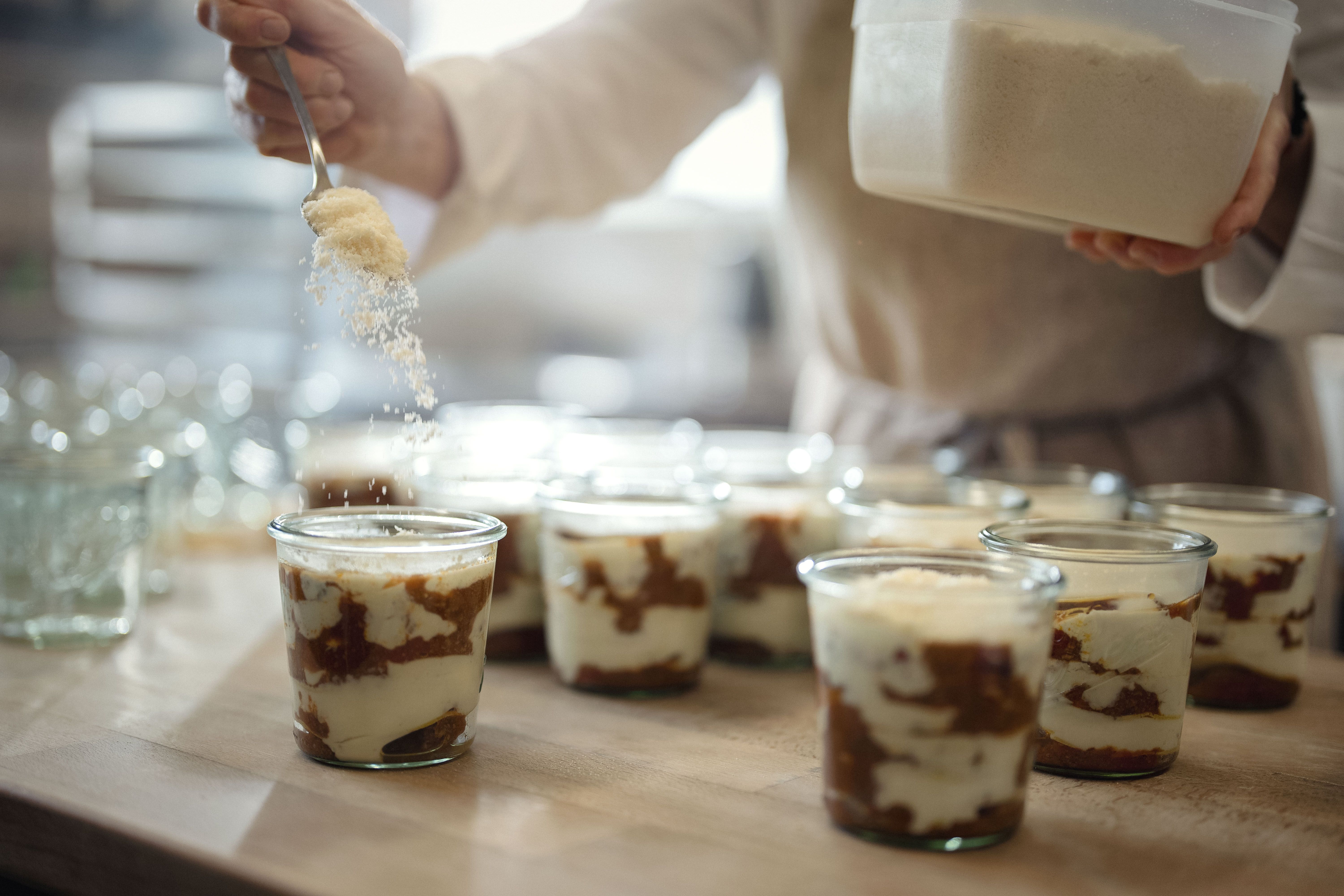 Daniel und Melitta bereiten Menüs im Glas in Bio-Qualität. GAIA bietet kulinarische Speisen mit Nachhaltigkeitsfaktor.