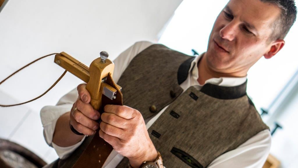 Gerhard Hofschwaiger vereint modernes Desing, Nachhaltigkeit und Tradition in seinen einzigartigen Produkten. Er fertigt wunderschöne Ledergürtel mit Holzschnallen aus alten Fässern an.