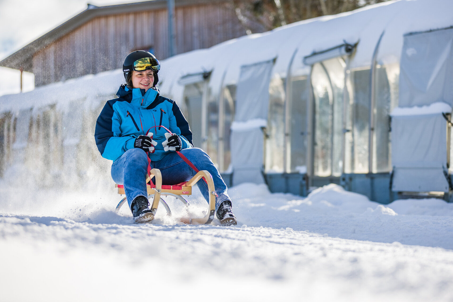 Rasant ins Tal geht's auch mit der Rodel. Im Skigebiet Annaberg wird während der Skisaison jeden Samstag von 17 bis 19 Uhr zum Flutlichtrodeln geladen. Nach 200 m Abfahrt geht's mithilfe des überdachten Förderbandes wieder zurück an den Start.