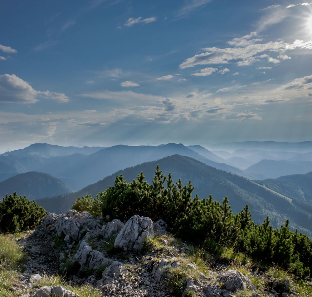 Oben angekommen, wartet ein herrlicher Panoramablick übers Mostviertel und in die umliegende Bergwelt. Auf dem weitläufigen Gipfel-Plateau lässt sich die Aussicht und frische Höhenluft hervorragend genießen - am besten bei einer kleinen Stärkung und einem Nickerchen auf der mitgebrachten Decke.