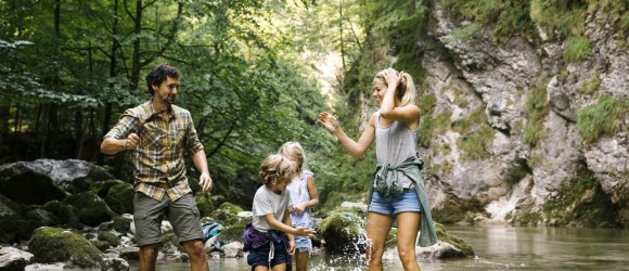Beachte, dass Abwechslung und spielerisches Entdecken für Kinder im Vordergrund stehen! In Passagen mit Absturzrisiko kann ein Erwachsener nur ein Kind betreuen. Sehr ausgesetzte Touren, die lang anhaltende Konzentration erfordern, sind für Kinder nicht geeignet.