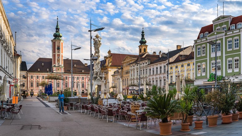 Bei einem entspannten Bummel durch die Altstadt steht natürlich der Rathausplatz an erster Stelle. Hier stechen sofort drei markante Bauwerke ins Auge – nämlich das Rathaus selbst, mit seiner barocken Fassade, die ihm gegenüberliegende Franziskanerkirche und die Pestsäule. Hier und in den schmalen Gassen, die vom Platz wegführen, laden immer wieder gemütliche Cafés und Lokale zum Verweilen ein. Unser Tipp: Unbedingt eine Prandtauertorte in der Café-Konditorei Pusch nahe dem Domplatz probieren – die ist nämlich legendär! Und nicht vergessen, einen Besuch beim beliebten Wochenmarkt am Domplatz einzuplanen - dieser hat Donnerstag und Samstag jeweils vormittags geöffnet!