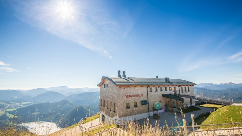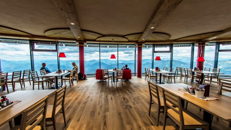 Im Terzerhaus übernachtet man auf 1.626 m Seehöhe quasi direkt unter dem Gipfelkreuz. Trotz der hohen Lage ist die Hütte barrierefrei erreichbar und verzaubert mit ihrer herrlichen Aussicht, die von der Skywalk-Panoramaterrasse und dem Panorama-Gastraum aus vom Erlaufsee bis zum Schneeberg, ins Gesäuse und sogar bis Mariazell reicht.