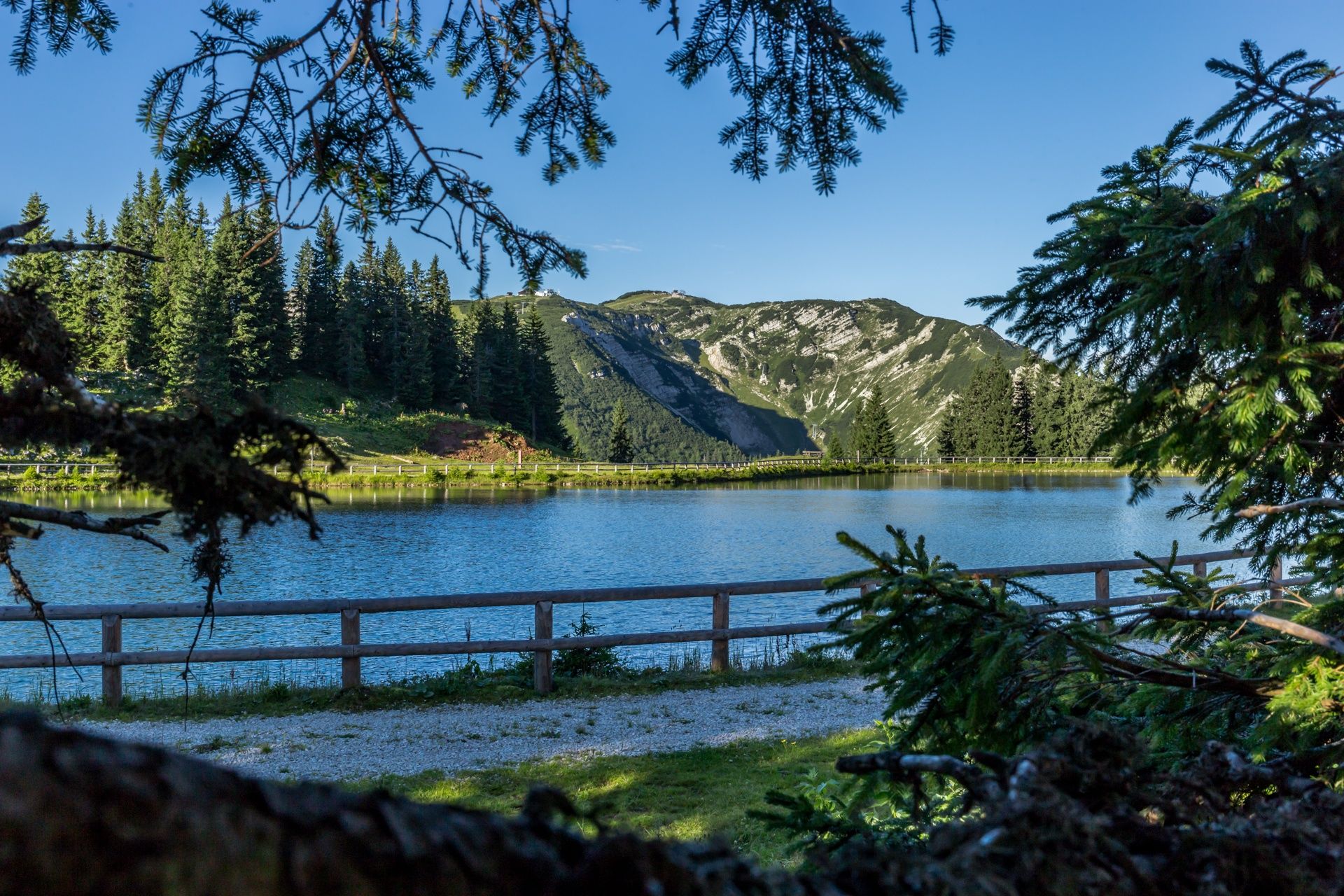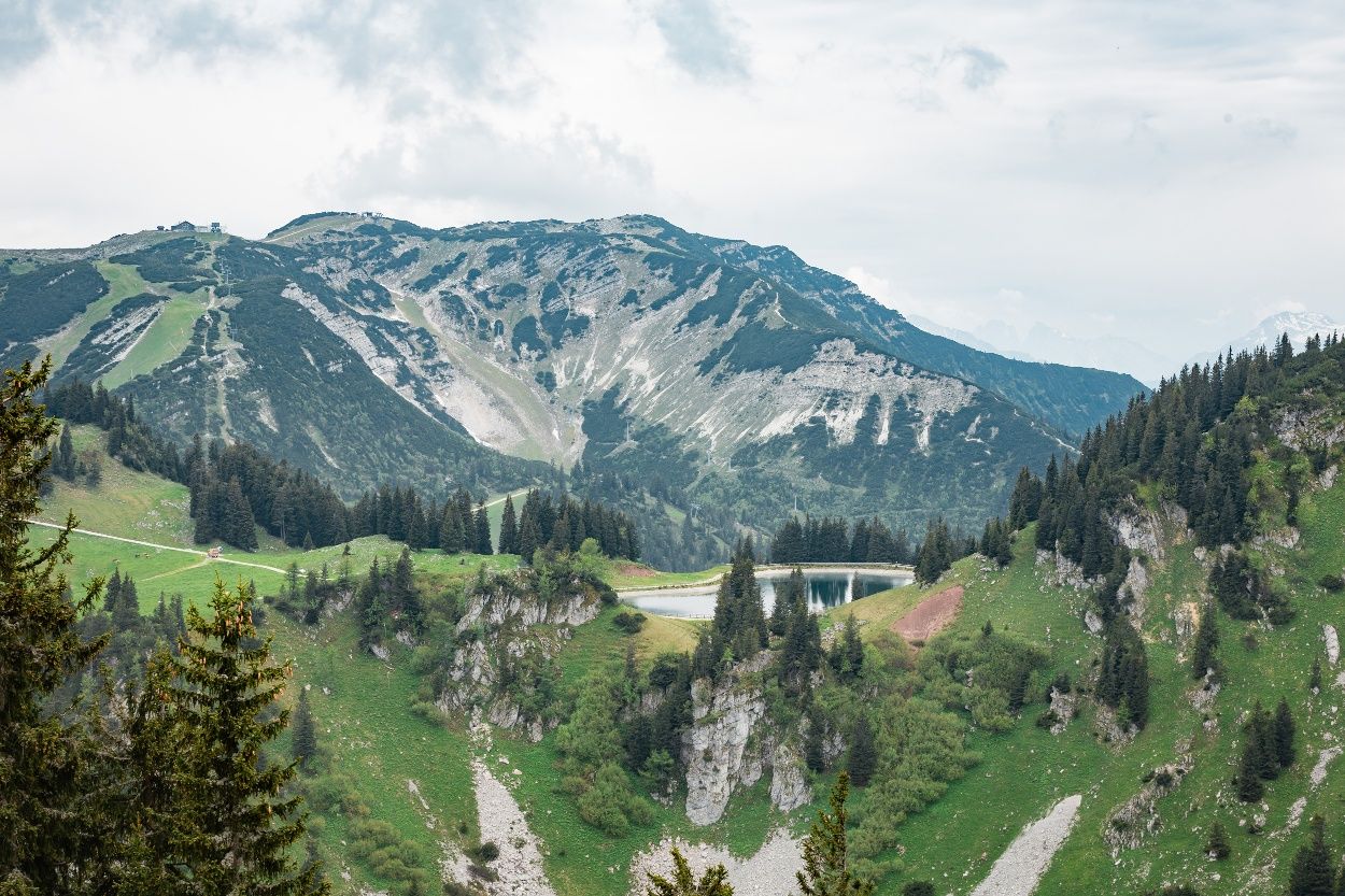 Auf dieser Wanderroute wird’s romantisch! Seid ihr erstmal bei der Forststraße angelangt, wandert ihr durch den Wald vorbei an der Latschen-Alm bis zum glasklaren Bergsee. Jetzt ist die Zeit gekommen, um auszuruhen und den Alltag einmal Alltag sein zu lassen. Vielleicht habt ihr sogar eine Picknickdecke und Proviant im Gepäck. Einfach auf der Almwiese Platz nehmen und die Almwelt genießen.