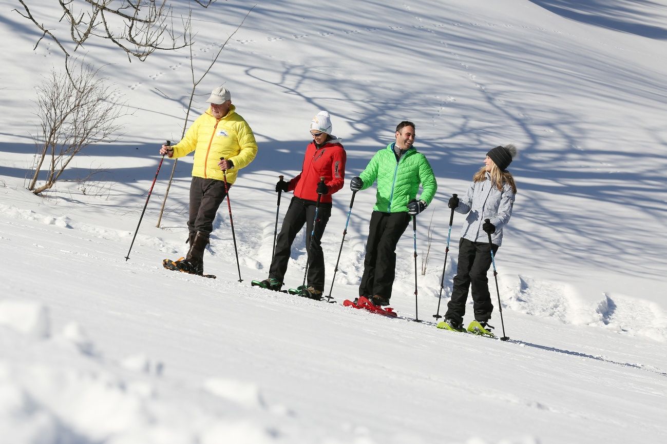 Gemütliche Schneeschuhtour durch den Wald. Genießen Sie die Ruhe durch die verschneite Winterlandschaft.