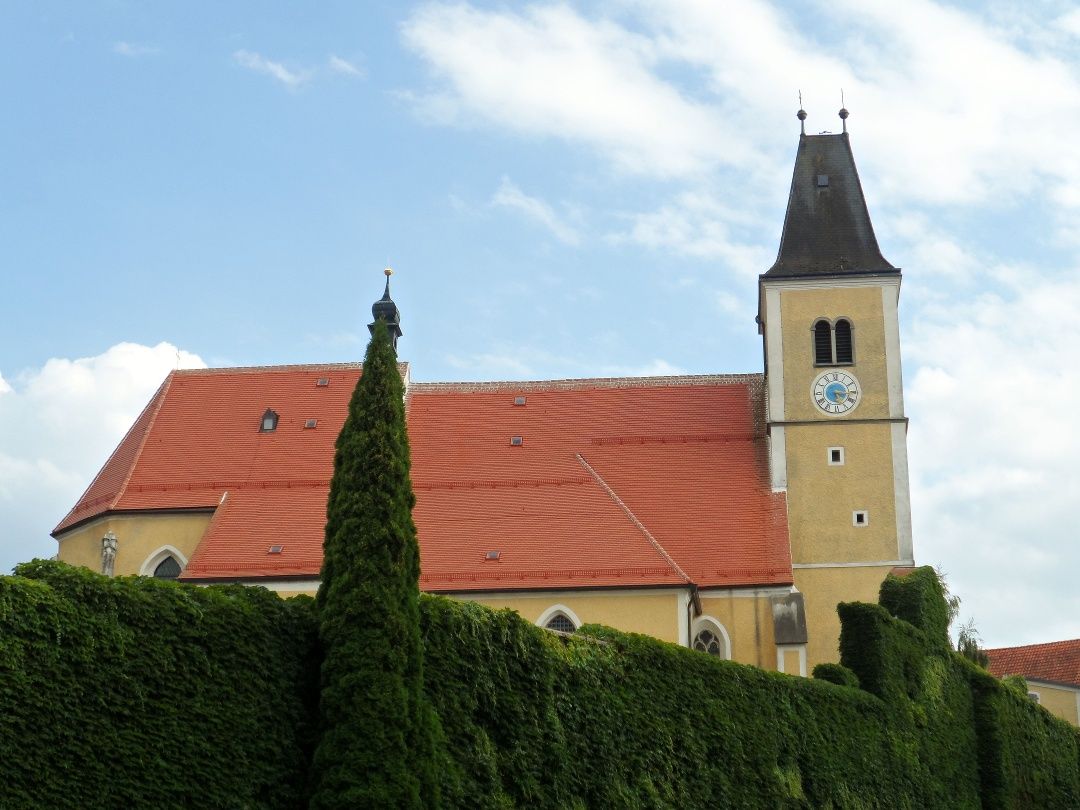 Die ersten Kilometer auf Etappe Nr. 3 des Jakobswegs Mostviertel von Wallsee-Sindelburg nach Mauthausen legen wir am idyllischen Donau-Altarm-Weg zurück. Gleich zu Beginn des Weges kommen wir an einem Denkmal zu Ehren des Heiligen Jacobus, Schutzpatron der Wanderer und Pilger, vorbei. Die Ruhe an der Donau, die unberührte Natur und die schöne Aussicht auf das noch ein Stück entfernte Strengberg, machen diesen Weg zu einer echten Besonderheit. An der Rohrmühle jedoch verlassen wir den Altarmweg und gehen am Mostviertler Rundwanderweg "landeinwärts" weiter. Wir erreichen Kleinhaag, Limbach und schließlich Strengberg mit der Johannes-Nepomuk Kapelle, der Pfarrkirche Mariä Himmelfahrt und dem historischen Postgebäude. Wir durchqueren den Ort in westlicher Richtung und wandern in relativ dünn besiedeltem Gebiet weiter. Für einige Zeit gehen wir am Augebiet von Grünau entlang und erreichen so Erla und die hier befindliche Benediktinerinnen Stiftskirche. Bergab geht es weiter zur Pfarrkirche St. Pantaleon in gleichnamiger Ortschaft und danach durch Marksee und Arthof über den Ennskanal bis nach Pyburg. Von Pyburg aus ist es nur mehr ein kurzes Stück bis ins Ortszentrum des direkt an der Donau gelegenen Mauthausen. In Mauthausen selbst kann man z.B. die auf einer Anhöhe gelegene Pfarrkirche zum Heiligen Nikolaus besuchen, die aufgrund der direkten Nähe zur Donau dem Schutzpatron der Schiffer und Fuhrleute geweiht wurde.