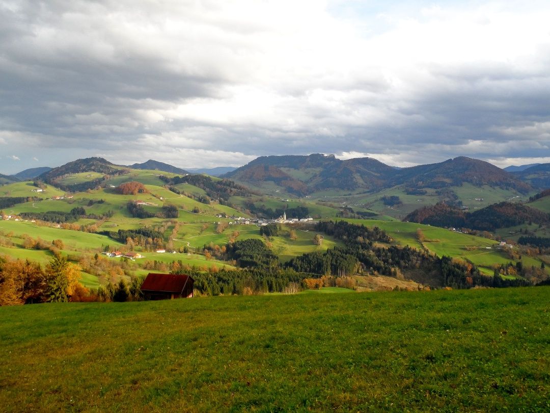 Von der historischen Stadt Steyr aus, beginnen wir unsere dritte Etappe an der Schönauer Brücke und überqueren die Enns, um an ihr Ostufer zu gelangen, wo wir dann auf dem von Villen gesäumten Bergerweg südwärts wandern. Bei St. Ulrich sehen wir rechterhand den Turm der Pfarrkirche des Ortes und biegen dann von der Rahoferstraße in den schönen Buchenwald ab. Wir durchqueren eine Siedlung und beginnen unsere relativ anstrengende Bergetappe zum Wirtshaus Schoiber. Von diesem, unter dem Damberg, dem Hausberg der Steyrer, gelegenen Wirtshaus aus, genießen wir eine wunderbare Aussicht auf Steyr hinunter und folgen über angenehme Waldwege den Wegweisern in Richtung Schwarzberg. Immer wieder öffnet sich hier der Wald und gewährt dem Pilger einen traumhaften Ausblick nach allen Seiten. Wir überqueren saftig grüne Lichtungen, durchwandern lichten Buchenwald, bestaunen die großen Windräder des Plattenberges und betreten schließlich am Spadenberg den Nationalpark Kalkalpen (Region Ennstal). Hier geht es, am linkerhand von Buchen und rechterhand von Fichten gesäumten Kammweg bis zum Gipfel des Spadenberges auf 1000 Metern Höhe und danach steil bergab zu einer Kapelle mit Rastplatz. Noch einmal müssen wir unsere Kräfte mobilisieren um den Geierkogel (886m) zu bewältigen, danach wird es aber gemütlicher und wir wandern stetig bergab bis nach Maria Neustift.