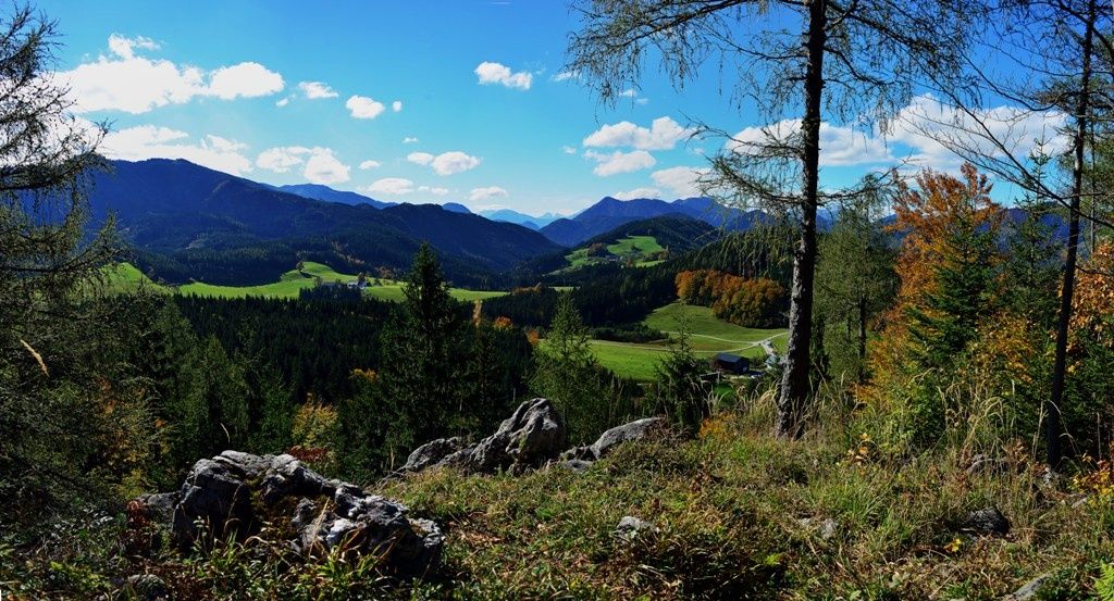 Über den Aussichtspunkt Steinkogel ,weiter über die Ablasser Mauern zum Sonnstein. Herrliche Aussicht über Hochreit und die Göstlinger Bergwelt mit Bänken zum Verweilen.