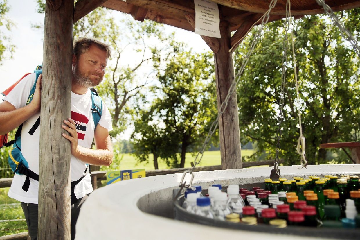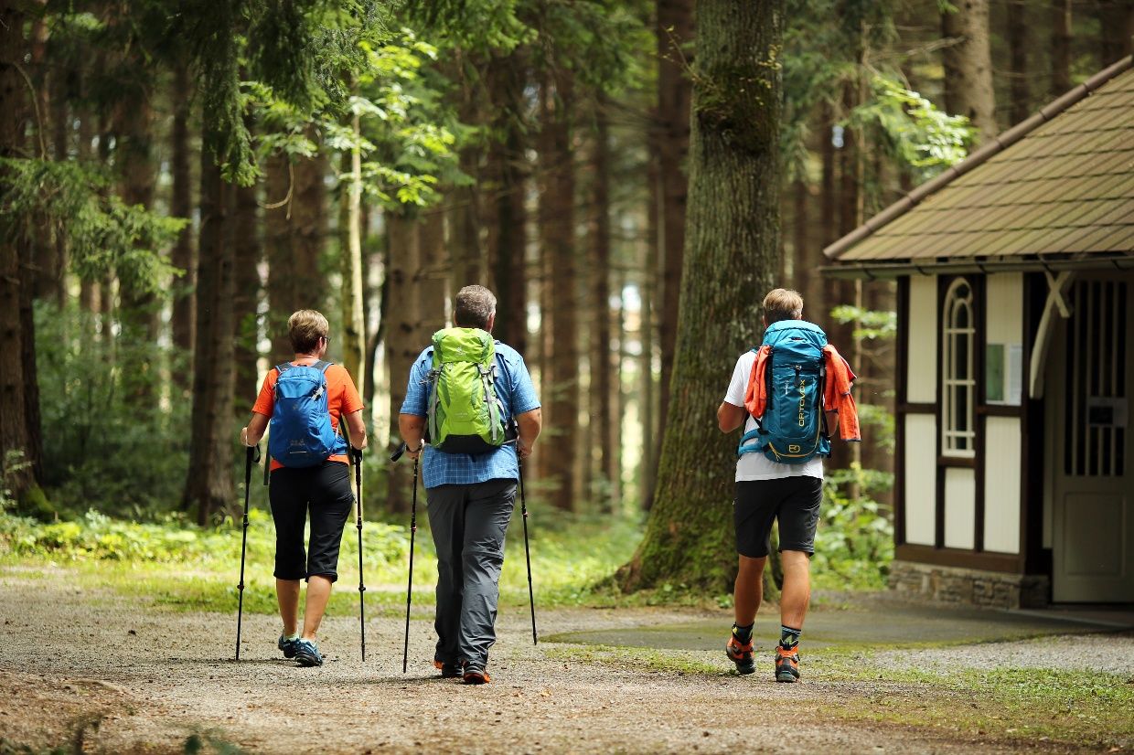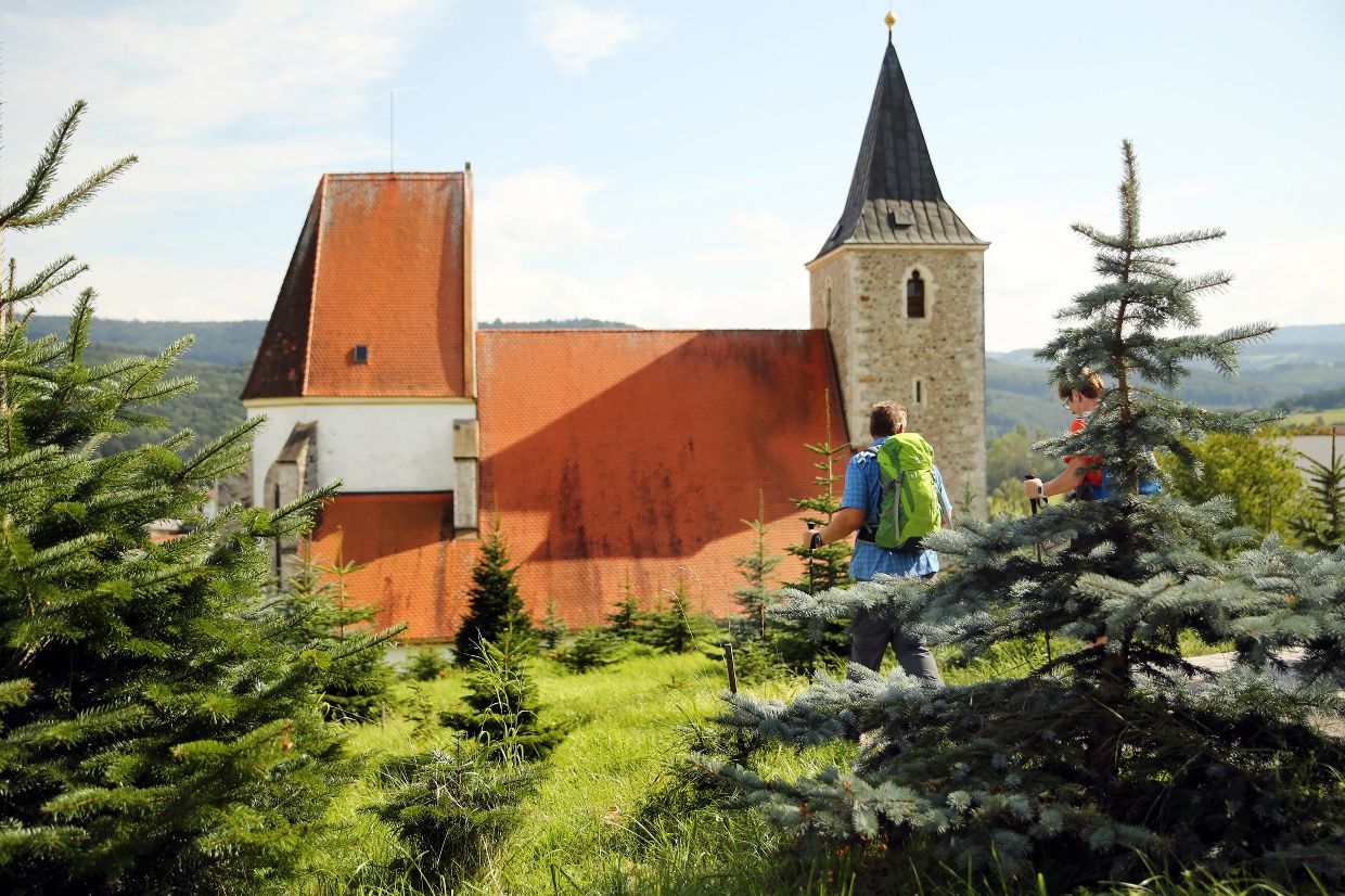 Weiter geht die Wanderung zur Dorfkirche in Weinburg und zur Lourdes Waldkapelle. Kurz danach mündet der Weg in den Pielachtaler Rundwanderweg Nr. 652, auf dem es bis zur Pfarrkirche von Grünau in der Marktgemeinde Hofstetten-Grünau weitergeht.