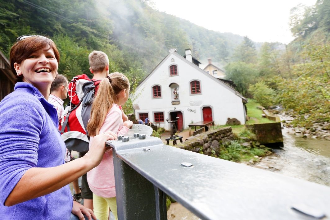 Die insgesamt knapp acht Kilometer lange Schmiedemeile ist zu einem Rückgrat geworden, an dem sich Ort und Einheimische ausrichten. Zwischen der Kleinen Ybbs, den Voralpenhügeln, den stattlichen Bauernhöfen im Norden und dem Prochenberg und Maisberg im Süden breitet sich ein Land aus, das aus der Authentizität seiner wirtschaftlichen Situation und Vergangenheit heraus lebt und von der ineinander verwobenen Natur- und Arbeitswelt Kraft und Charme bezieht. Die toll gestaltete Erlebniswanderung steht ganz im Zeichen der Schmiedekunst: Teil des Weges ist die imposante Erlebnisbrücke, eine von ortsansässigen Schmieden erschaffene, sich über den Wasserfall des Prollingbaches spannende metallene 25 m Bogenbrücke. Entlang des Wasserfallweges geht es bei Schmieden vorbei. Nach einem kurzen Anstieg zum Goldfischteich geht es zurück durch den Dr. Meyer-Park, der Schmiedemeile folgend, bis zum "Schwarzen Haus", wo der Weg zurück ins Ortszentrum und zum Ausgangspunkt führt. Eine Reise vom Heute ins Damals und wieder zurück.