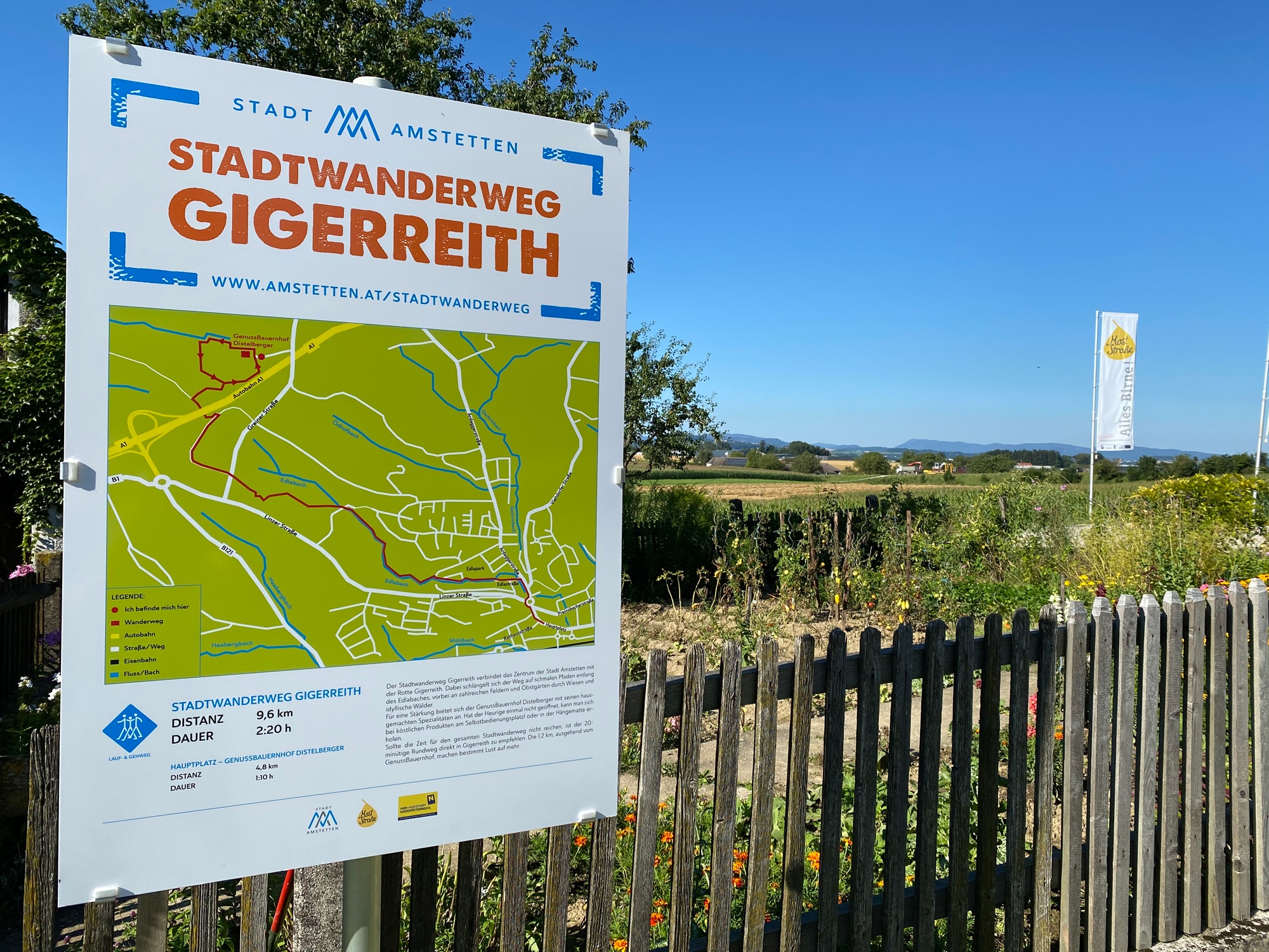 Der Stadtwanderweg Gigerreith führt Sie vom Stadtzentrum Amstetten über schmale Pfade und durch idyllische Wälder zum GenussBauernhof Distelberger.
