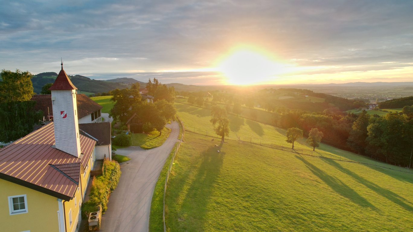 Geradeaus weiter – vorbei am Feuerwehrhaus Glanegg – geht es nun ca. 1,2 km bis zur nächsten Kreuzung. Der Weg geht geradeaus weiter, vorbei den Bauernhäusern Gansberg und Orth, nun erreicht man die Kapelle der Familie Krondorfer (Orth), die der Heiligen Familie geweiht ist. Gleich anschließend lädt der „Lammerhuberblick“ zu einer kurzen Pause ein – hier öffnet sich ein großartiges Panorama nach Osten und Norden.