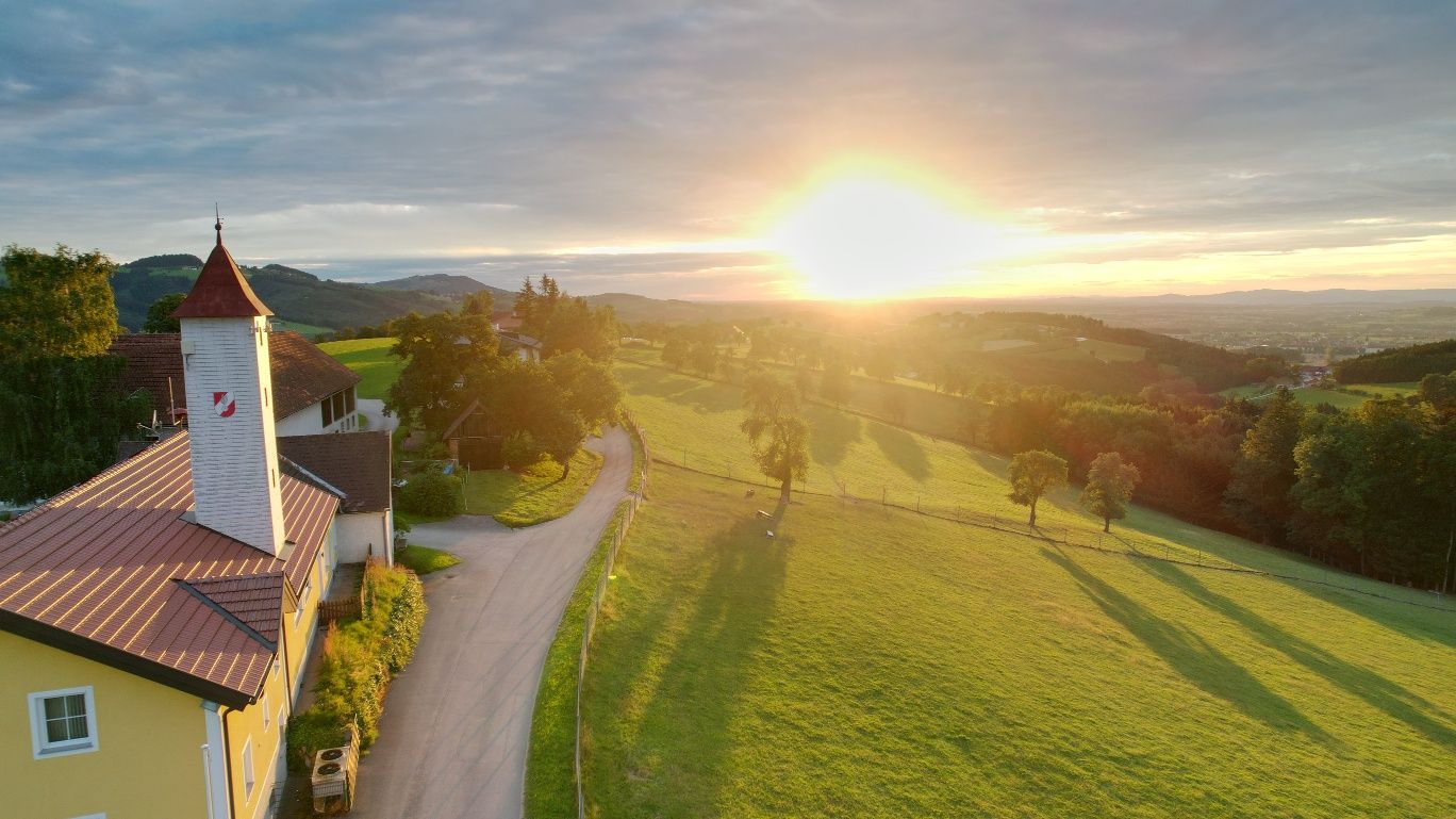 Nach Norden reicht der Blick bis zur Donau und weit hinein ins hügelige Mühlviertel.
