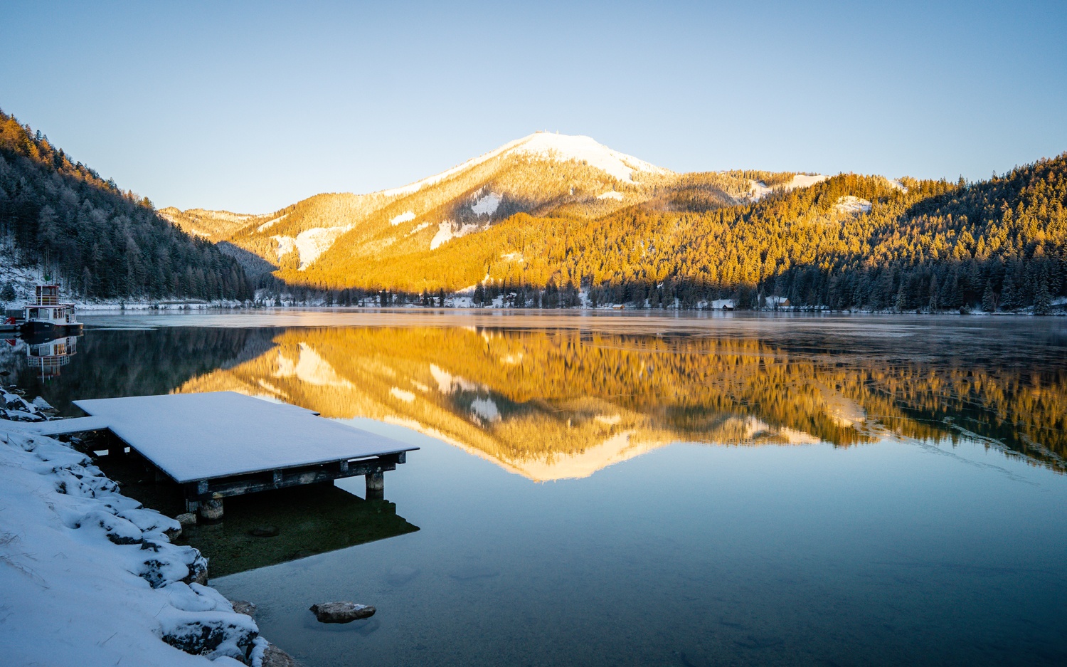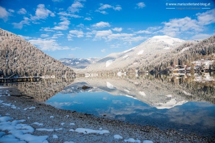 Die Runde um den Erlaufsee ist ideal für einen kurzen, erholsamen Winterspaziergang. Die Seepromenade schlängelt sich gemütlich dem See entlang und bietet wunderschöne Plätze um kurz innezuhalten. Aufgrund des geringen Verkehrsaufkommens im Winter ist der Rückweg auf der Landstraße kein Problem.
