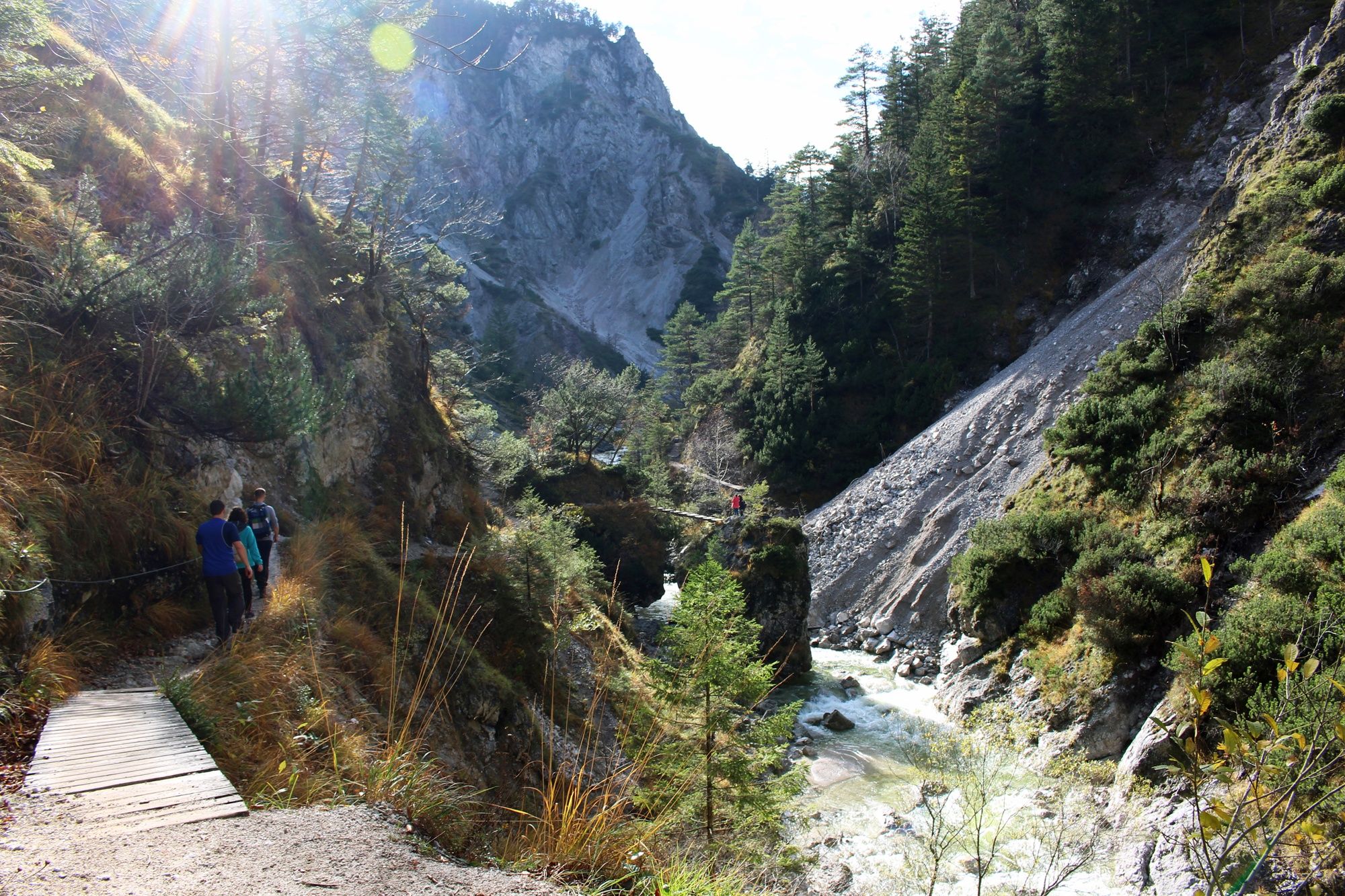 Vom Naturparkzentrum Ötscher-Basis in Wienerbruck aus - welches sich ideal zum Einkehren vor oder nach der Tour eignet - führt der Weg entlang des Stausees Wienerbruck zur ältesten Staumauer Österreichs. Dort befindet sich auch der Einstieg in eine der beeindruckensten Landschaften des Landes. Der schöne Pfad folgt dem Verlauf der Lassing bis hin zum tosenden Lassingfall. Über mehrere Abbrüche stürzt das Wasser rund 160m in die Tiefe, bis es sich am Fuße des Wasserfalls mit der Erlauf vereinigt. Genau dort, am sogenannten Stierwaschboden, steht ein eindrucksvolles Gebäude - das Kraftwerk Wienerbruck. Einst zur Elektrifizierung der Marizellerbahn errichtet, ist es bis heute voll in Betrieb und 2015 wurde die Turbinenhalle für Besucher zugänglich gemacht. Es sollten auf alle Fälle ein paar Minuten für einen Besuch eingerechnet werden. Von hier aus verläuft der Weg über Steige, Stege und Brücken immer bachaufwärts dem Ötscherbach entlang. Ab der Jausenstation Ötscher-Hias führt der Weg über ein kurzes Stück Forststraße zum Stausee Erlaufklause. Entlang des Seeufers schlängelt sich der Weg durch eine weitere einzigartige Landschaft. Nicht zu unrecht wird dieser Landschaftsabschnitt auch gerne als Fjord bezeichnet. In Mitterbach angekommen bietet sich das Stapelhaus mit seinem einzigartigen Blick auf den Ötscher noch zur Einkehr an. Die Mariazellerbahn bringt die Wanderer vom Bahnhof Mitterbach aus zurück nach Wienerbruck.