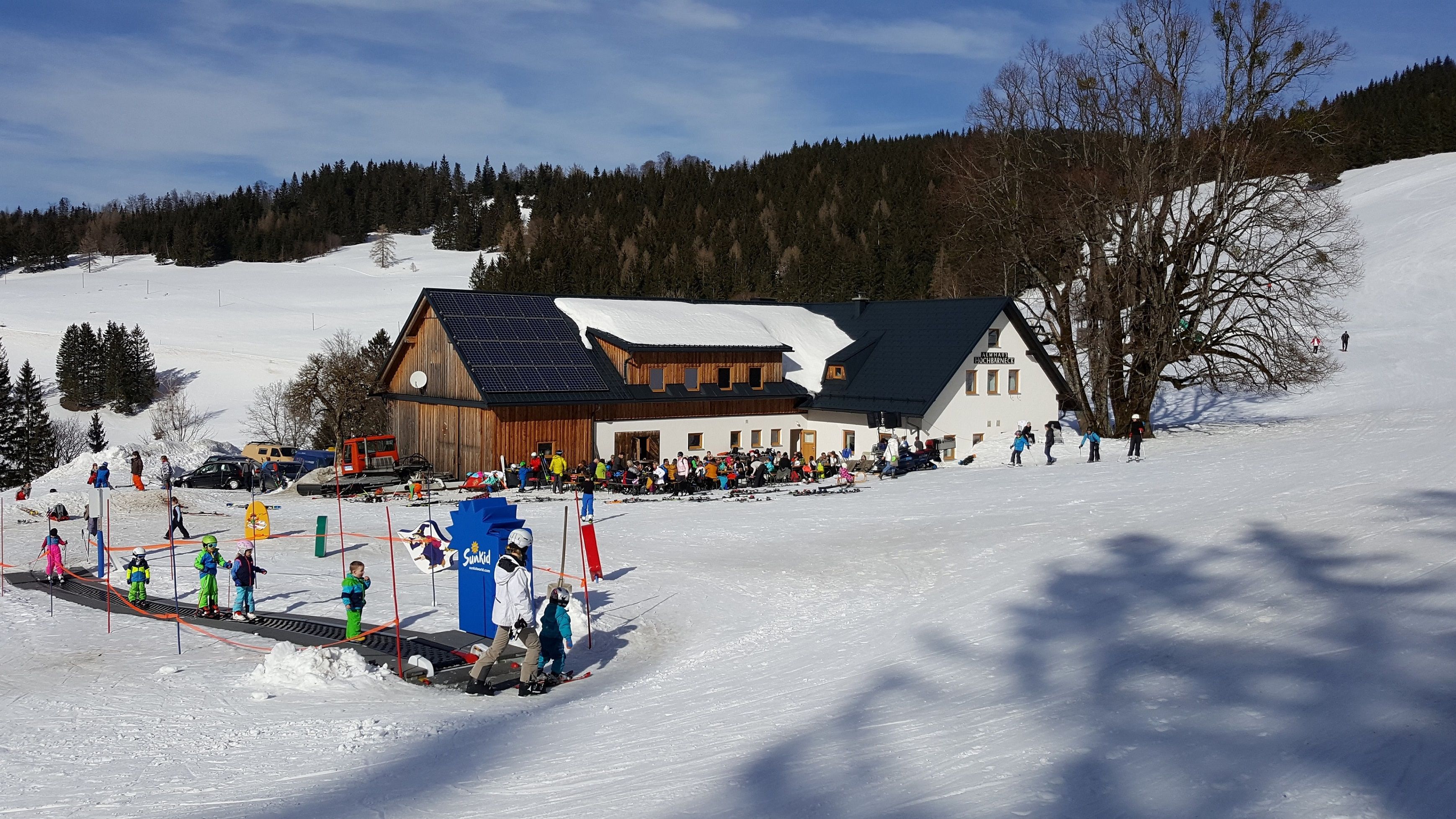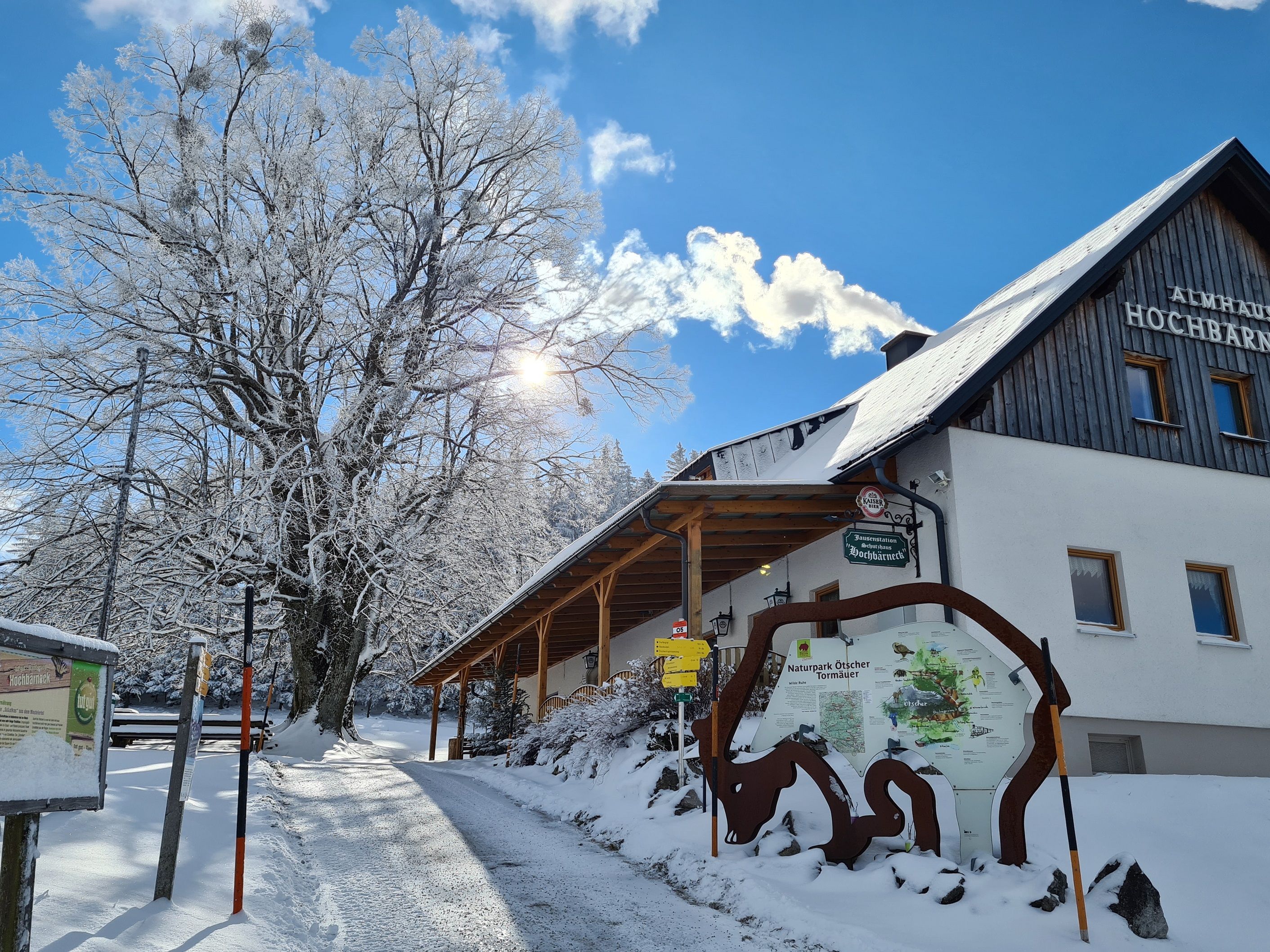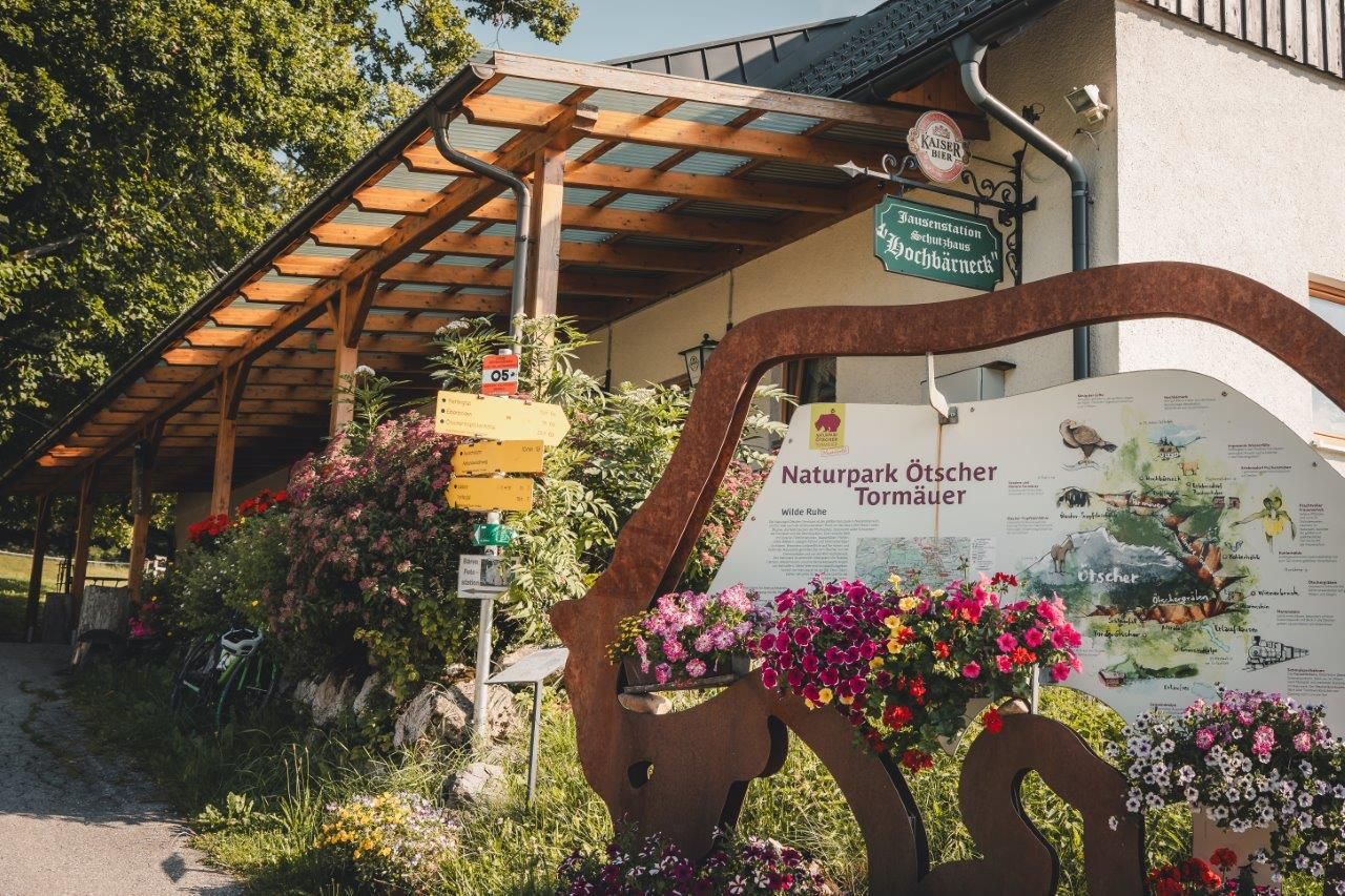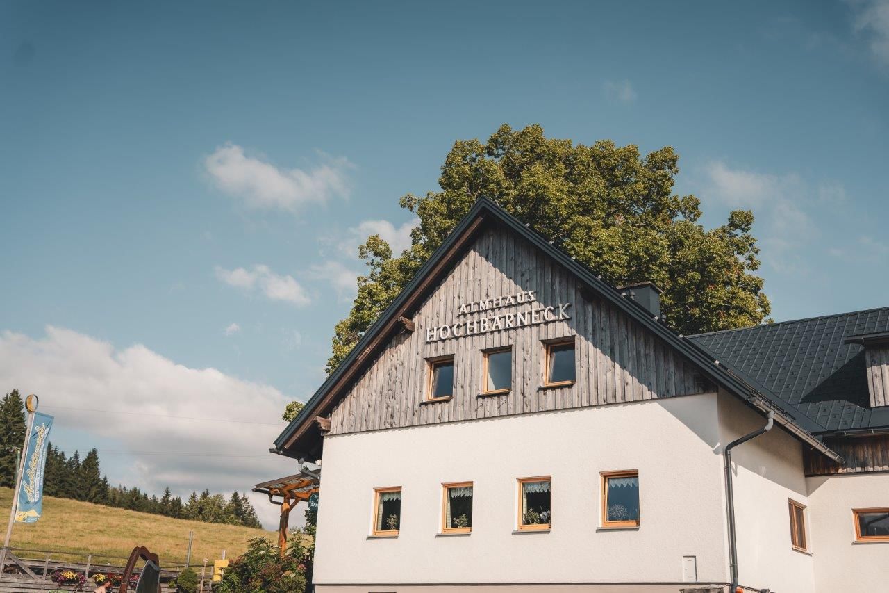 Das gemütliche Almhaus am Hochbärneck bietet Platz für bis zu 150 Gäste. Im Sommer kann man im Gastgarten mit Blick auf die Kühe auf der angrenzenden Alm gut speisen. Die Almwirtin kredenzt herzhafte Hausmannskost. An besonders heißen Tagen spendet die 150-jährige Linde Schatten. Kinderspielplatz, Alpengarten und Aussichtswarte machen das Almhaus Hochbärneck zu einem attraktiven Ausflugsziel für die ganze Familie.