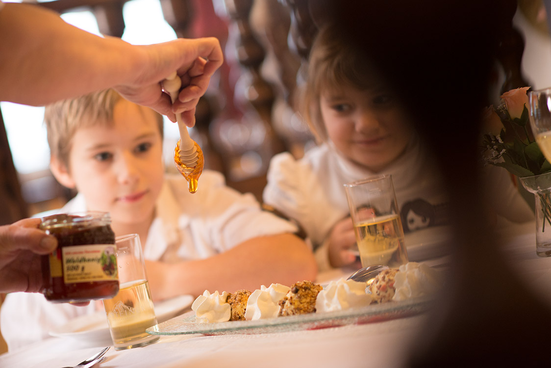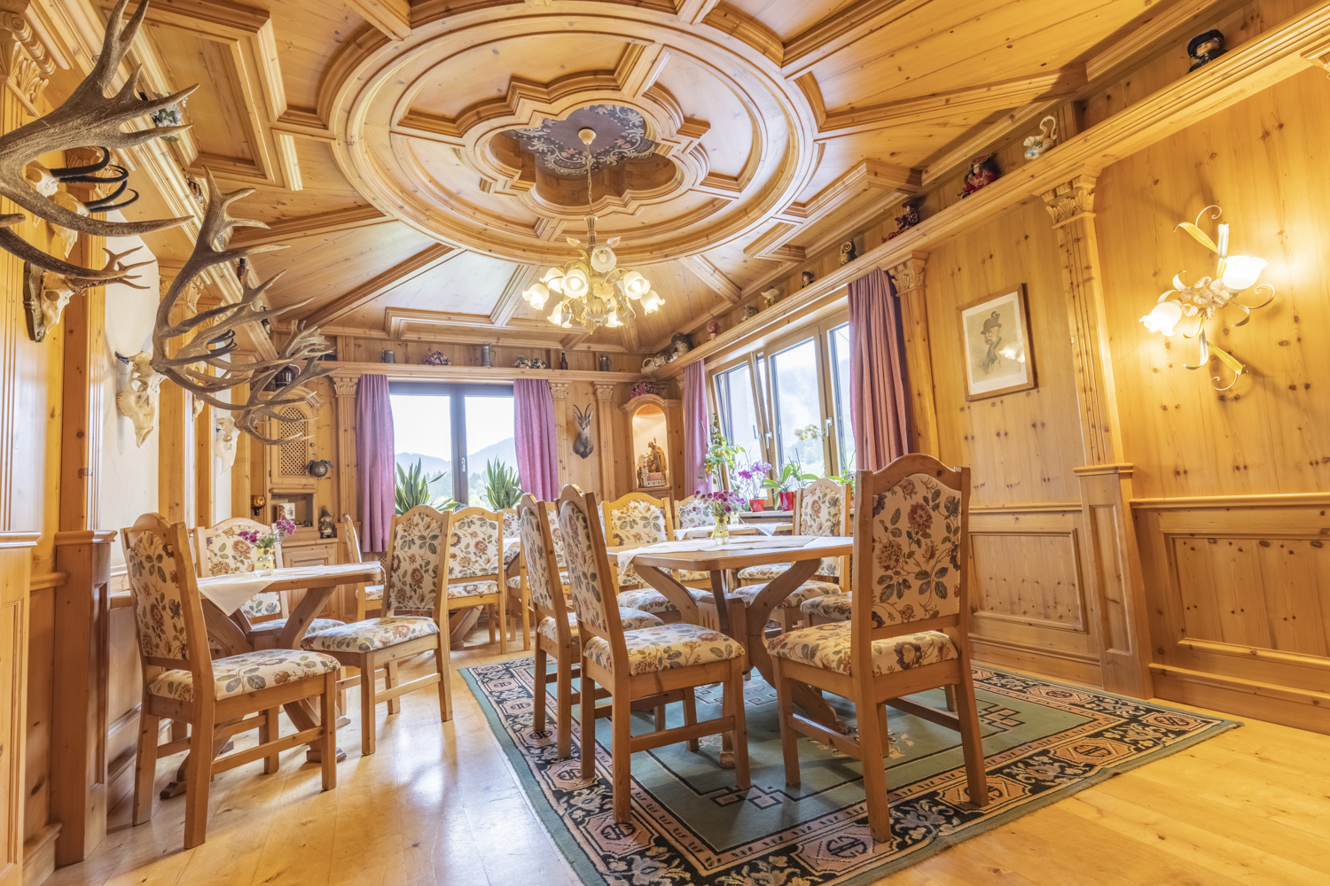 Die gemütlichen Zimmer des Hauses verbinden traditionelle Atmosphäre mit zeitgemäßem Komfort. Nach einem erlebnisreichen Tag lädt der Wellnessbereich mit Hallenbad, finnischer Sauna und Dampfsauna zur Entspannung ein. An sonnigen Tagen lockt der Außenbereich mit Ruhe und Bergblick.